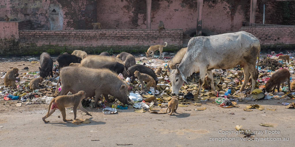 Back in the outskirts of Vrindavan, the municipal rubbish disposal workers are hard at work.