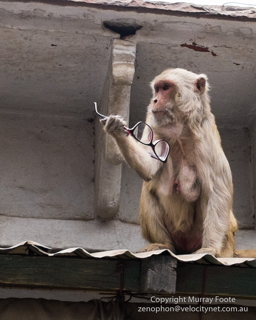 The monkeys are a hazard here.  One of their favourite tricks is to grab someones glasses and retreat to the roof.  People then have to throw food up to them so they let the glasses go.