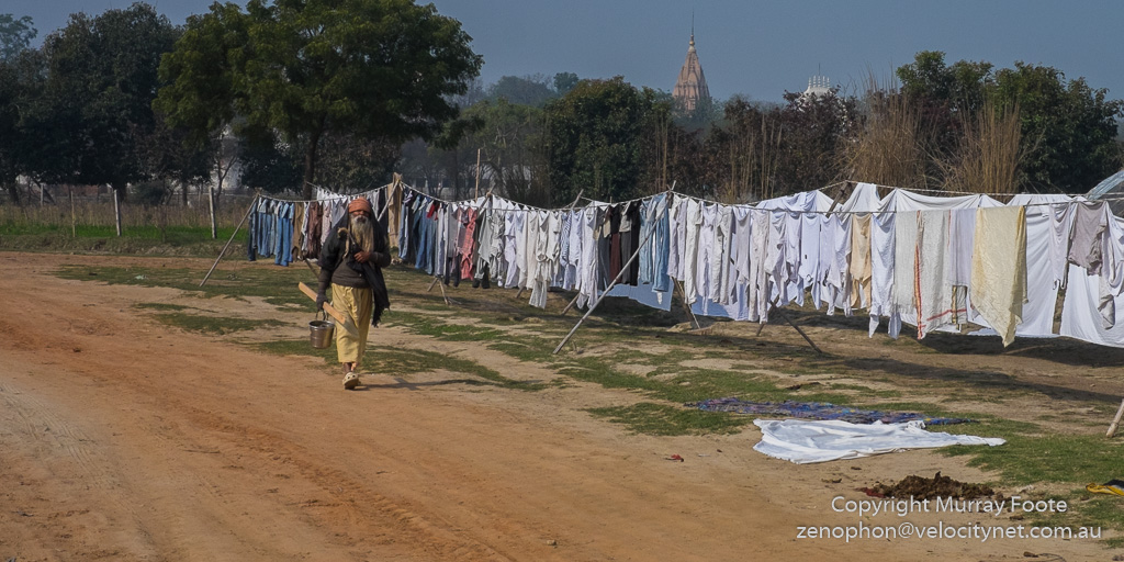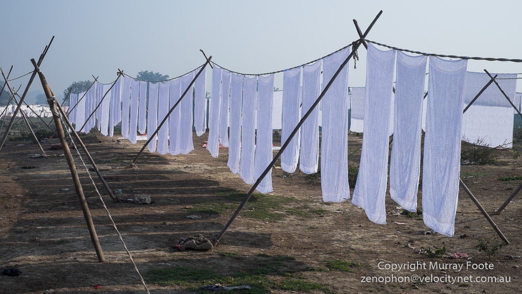 Continuing on from the morning walk in the previous post, we left Vrindavan and headed off towards the country.  We walked past a dozen or so people washing and beating clothes in the open air as a commercial activity.  We were told they would not appreciate us taking photographs so I have none to show you.  However, here are the clothes lines as we walked past.