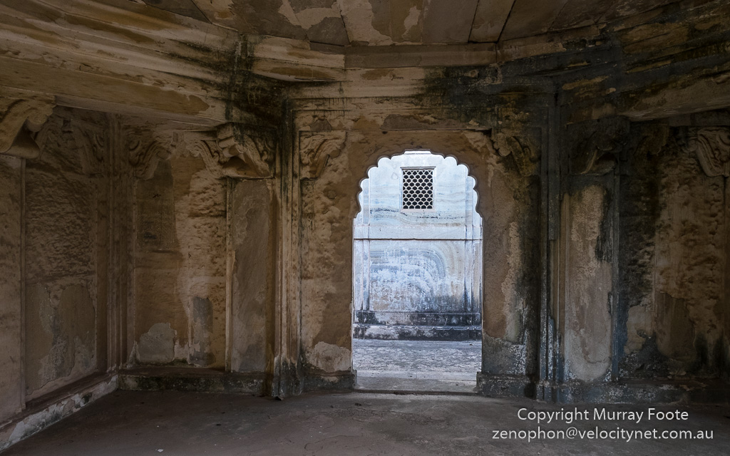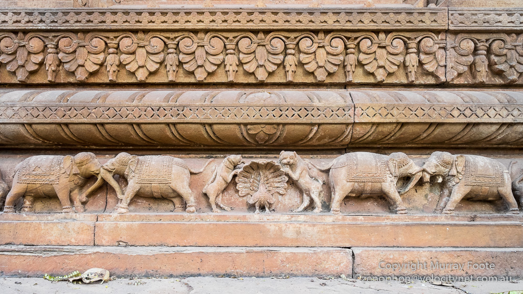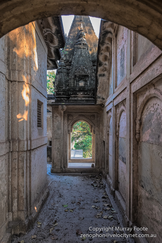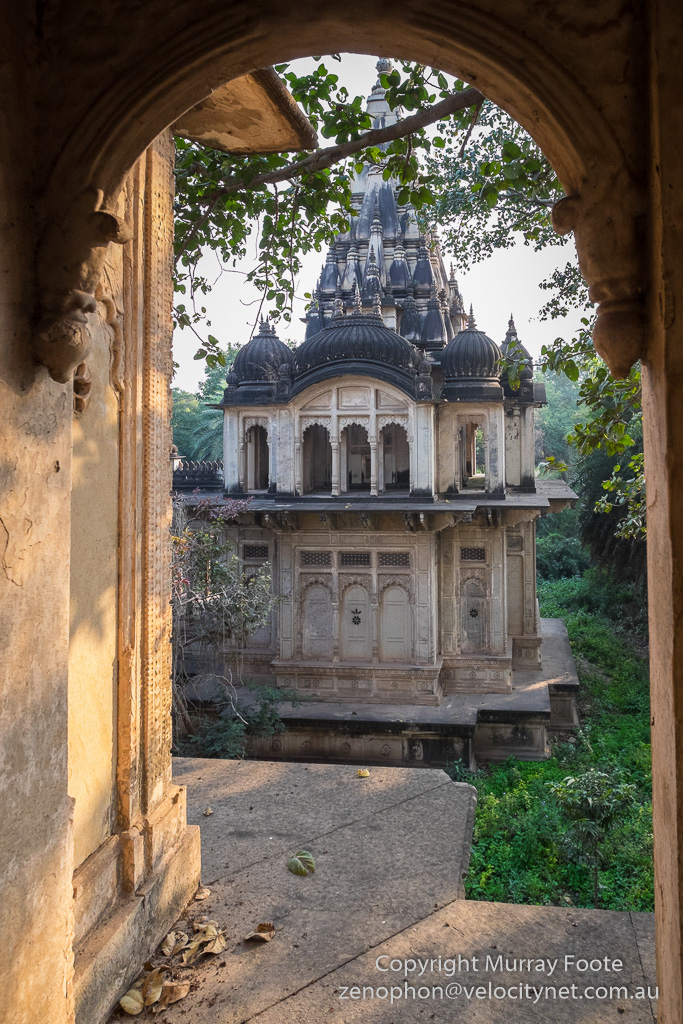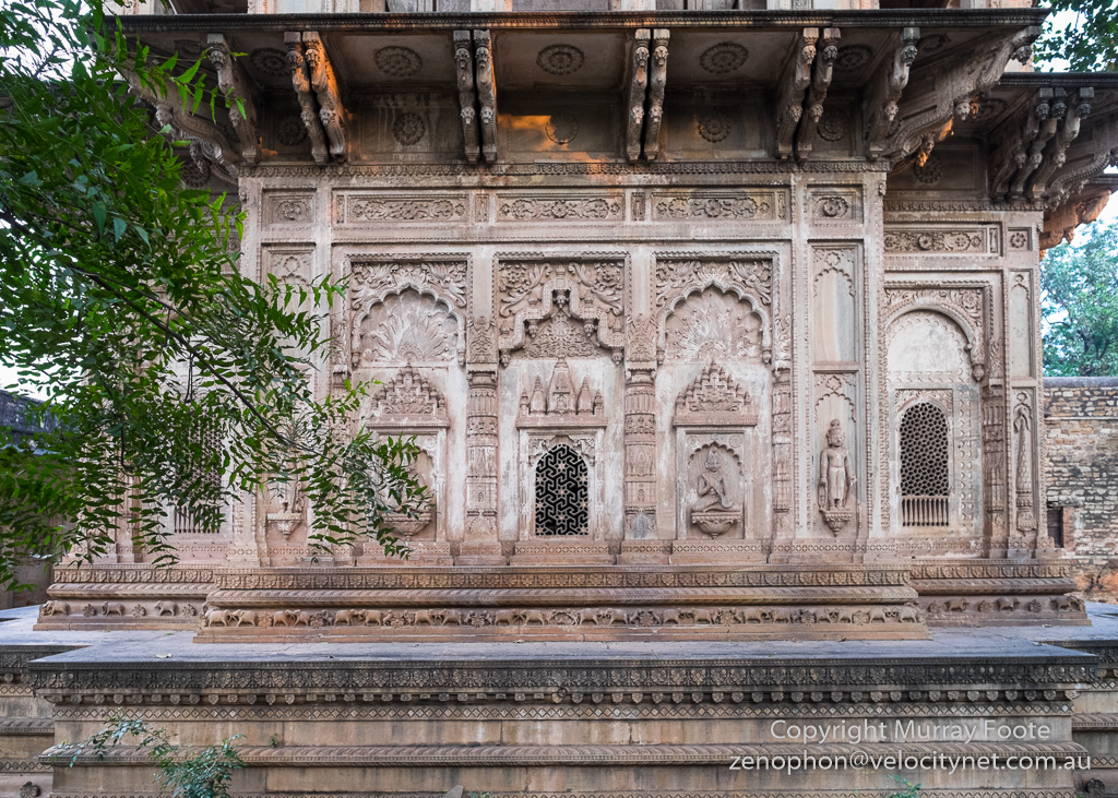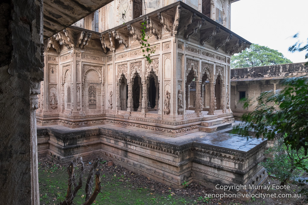 In the grounds of the hotel are two Hindu Temples from the seventeenth or eighteenth centuries in a very fine state of preservation. Unlike many other places we visited where we were obliged to rush through under time constraints, here we could consider these temples at our leisure and use tripods. They are private family temples and date to the eighteenth century when the Marathas took over Gwalior.