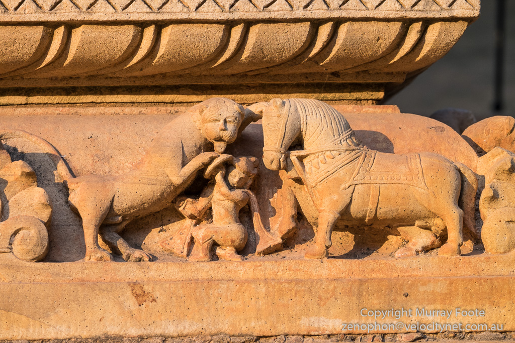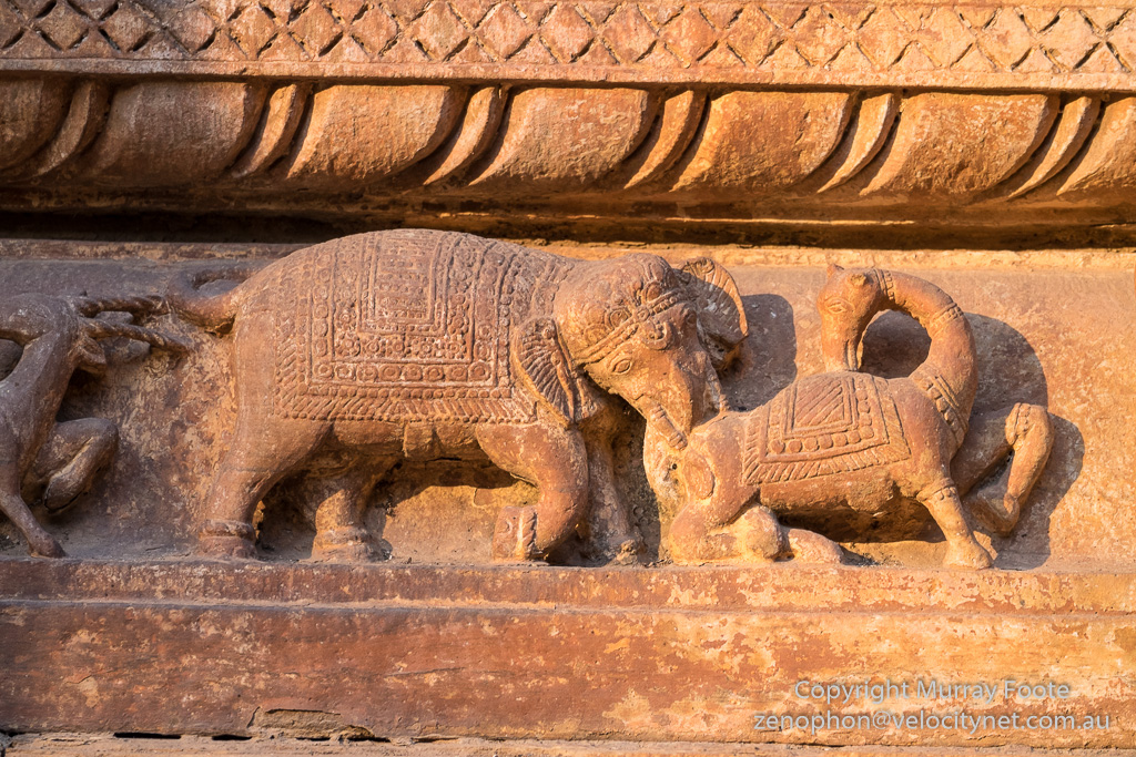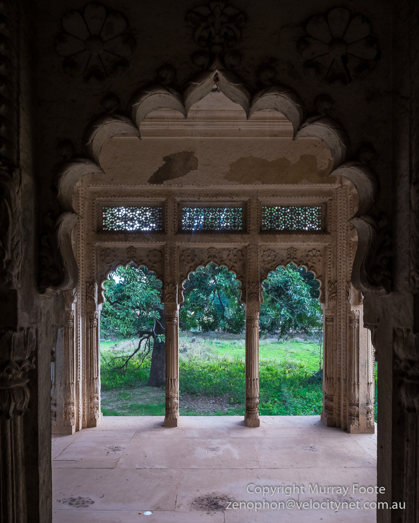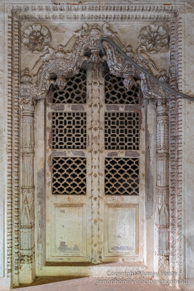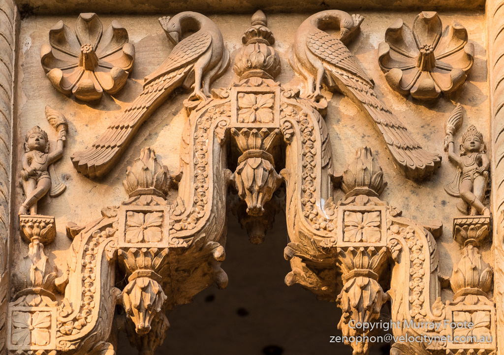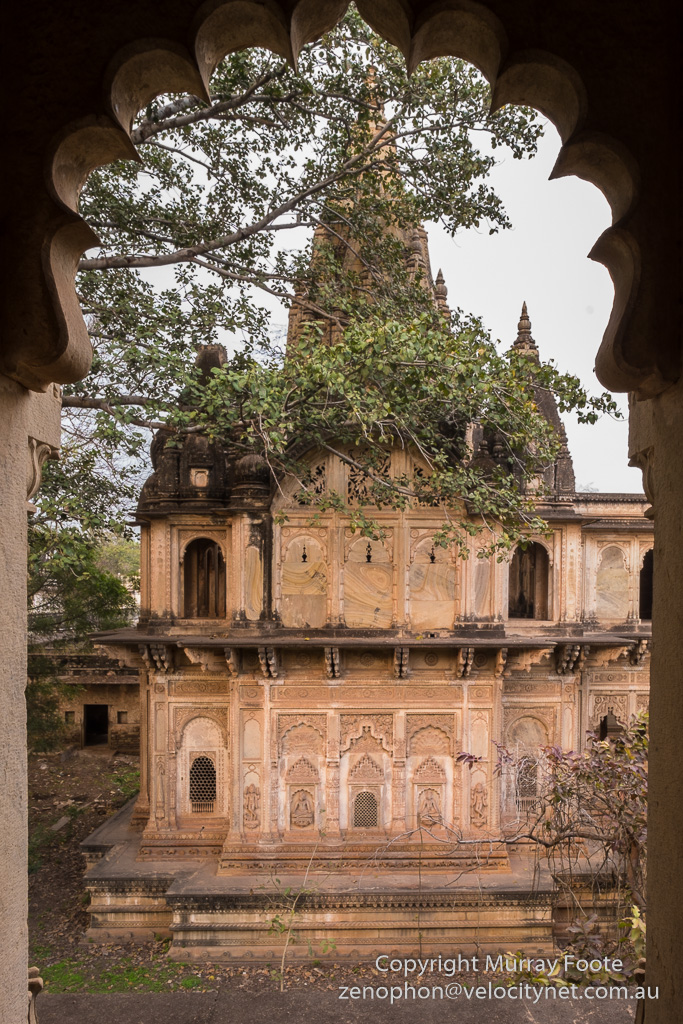 In the grounds of the hotel are two Hindu Temples from the seventeenth or eighteenth centuries in a very fine state of preservation. Unlike many other places we visited where we were obliged to rush through under time constraints, here we could consider these temples at our leisure and use tripods. They are private family temples and date to the eighteenth century when the Marathas took over Gwalior.