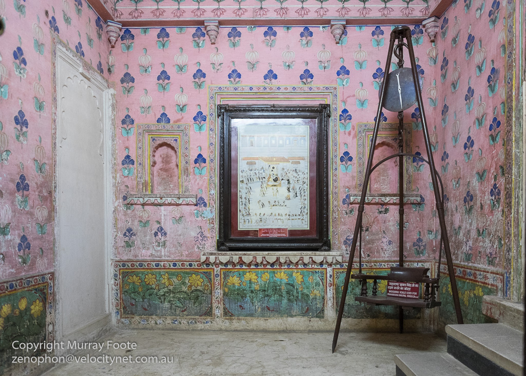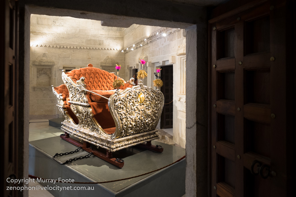 This is the weighing scale used for Maharana Bhupal Singh. It is said that his weight in gold was distributed to the poor every year. Not so good for the poor if an infant succeeded to the throne.