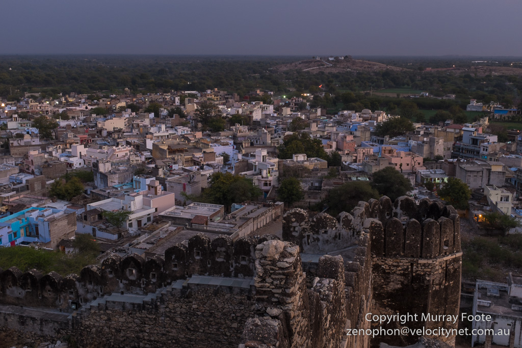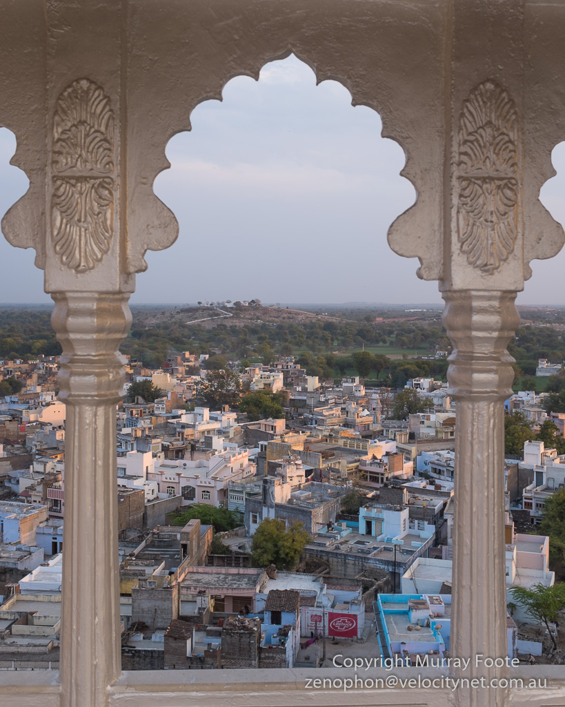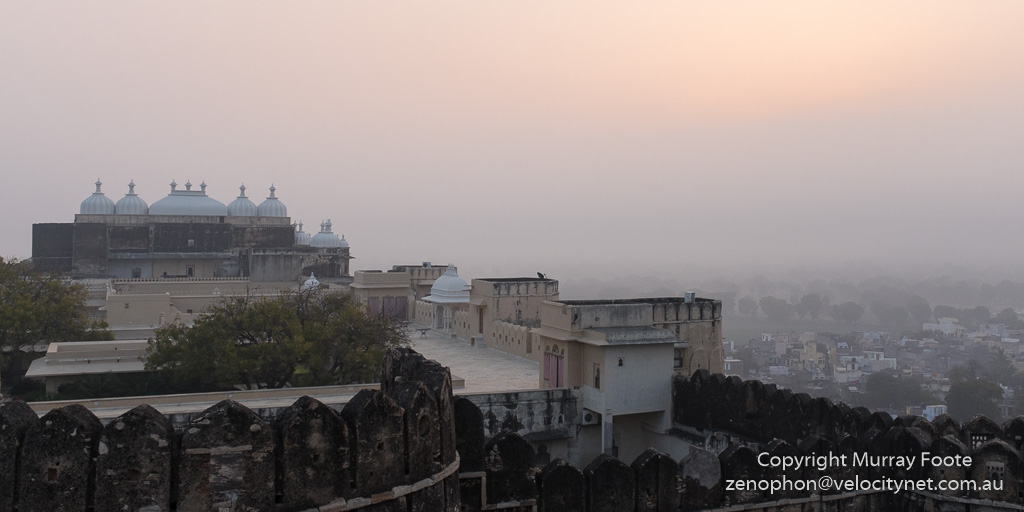 We had arrived at a modern hotel inside a massive ancient fort, built by Sardar Singh from 1738 to 1743. He also built the Lake Palace in Udaipur. I have been able to find little of the fort’s history but at one time it was severely damaged by the explosion of a powder magazine and at another was besieged by the Holkars of Indore, about 500 kilometres south-east.