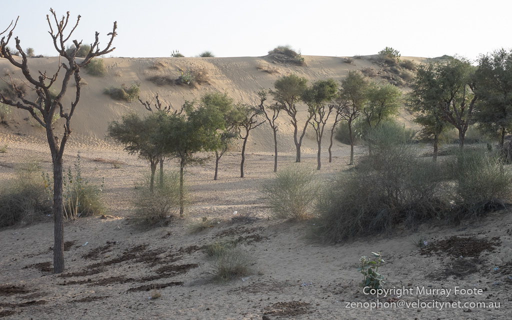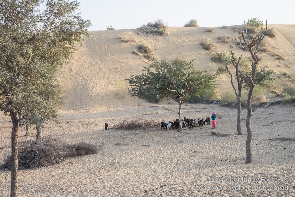 These desert trees are evidently very hardy.  On the right you see a couple that have been pruned.  Someone is  up the tree in the middle distance, savagely pruning it.  The goats get the green foliage and the rest must be for the fire.