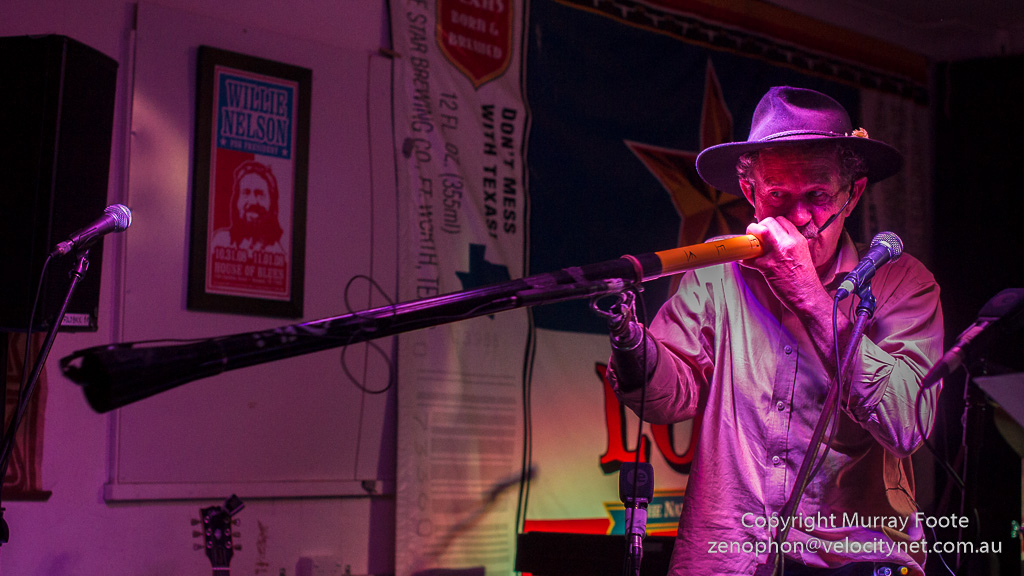 Charlie is here playing a didgibone, a cross between a didgeridoo and a trombone.