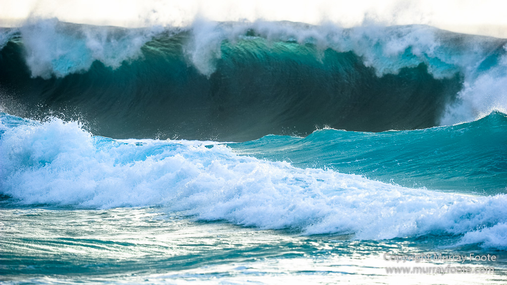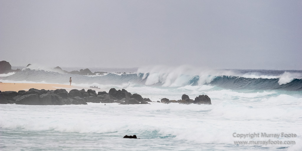 In the late afternoon the rain stopped so we went out again, this time to Pipeline. In the first image we see a lone female far down the beach, contemplating the surf thundering in.