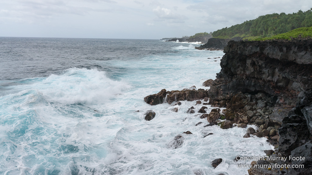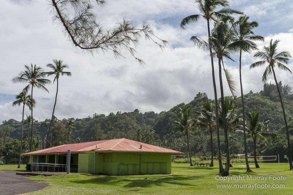 Here we are further north along the west coast and have descended from the highway to the tiny coastal settlement of Laupahoehoe. These are coconut palms where we parked the car.