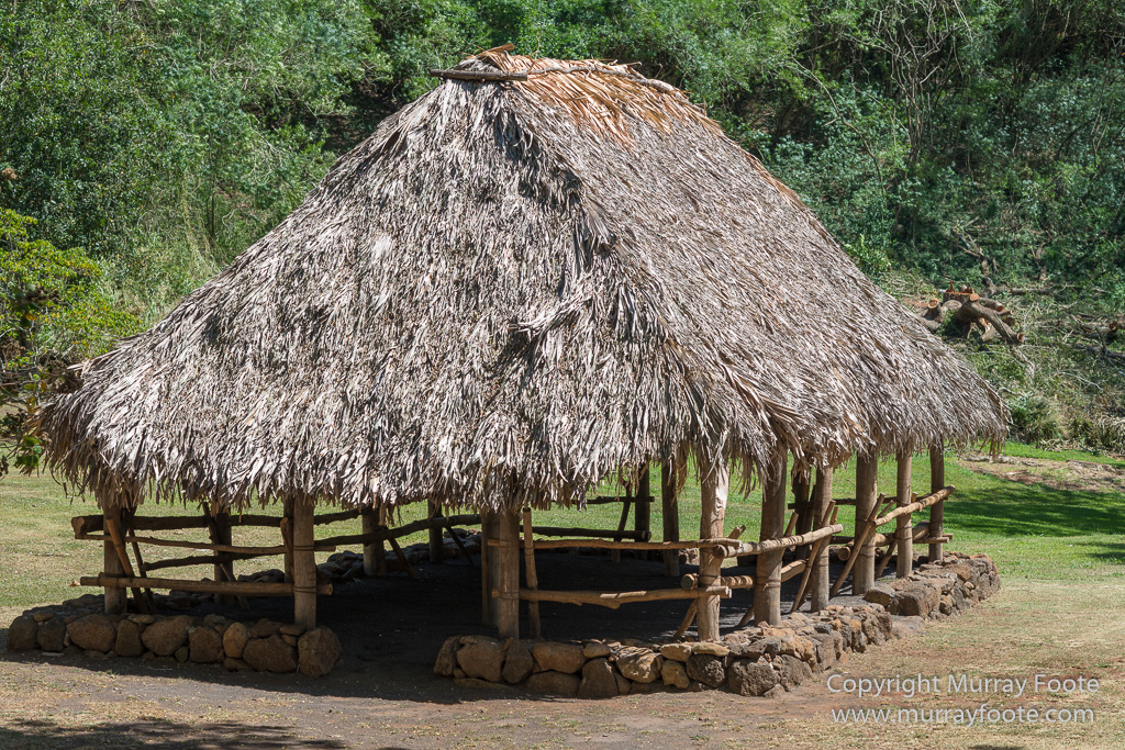 This is a hale halawai or meeting house. Planting of taro terraces is proceeding in a garden behind it under traditional and culturally important trees such as hala, kou and milo. Taro is one of the main traditional Hawaiian staple crops.