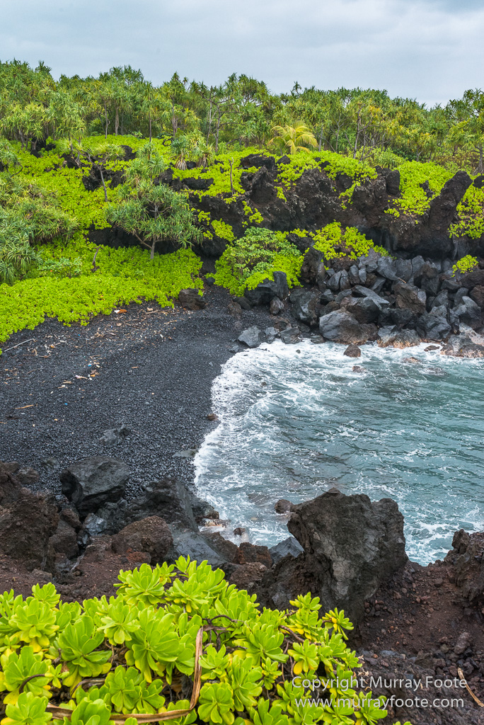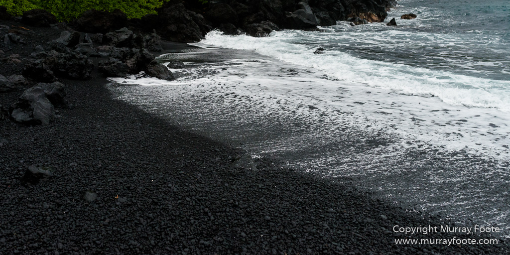 From Kahanu Gardens we went to Waianapanapa Black Sand Beach, just outside of Hana, that we had visited briefly the previous day. The weather was better although there was still rain in the air.