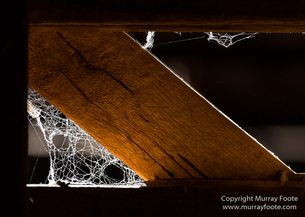 Inside it was dark, apart from a few shafts of light and the open door at one end. Spiderwebs in the light were harder to catch than one might think because the changing light meant patterns were quickly gone.