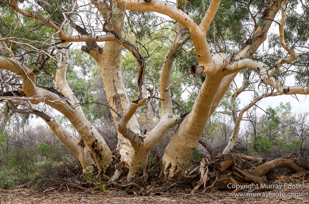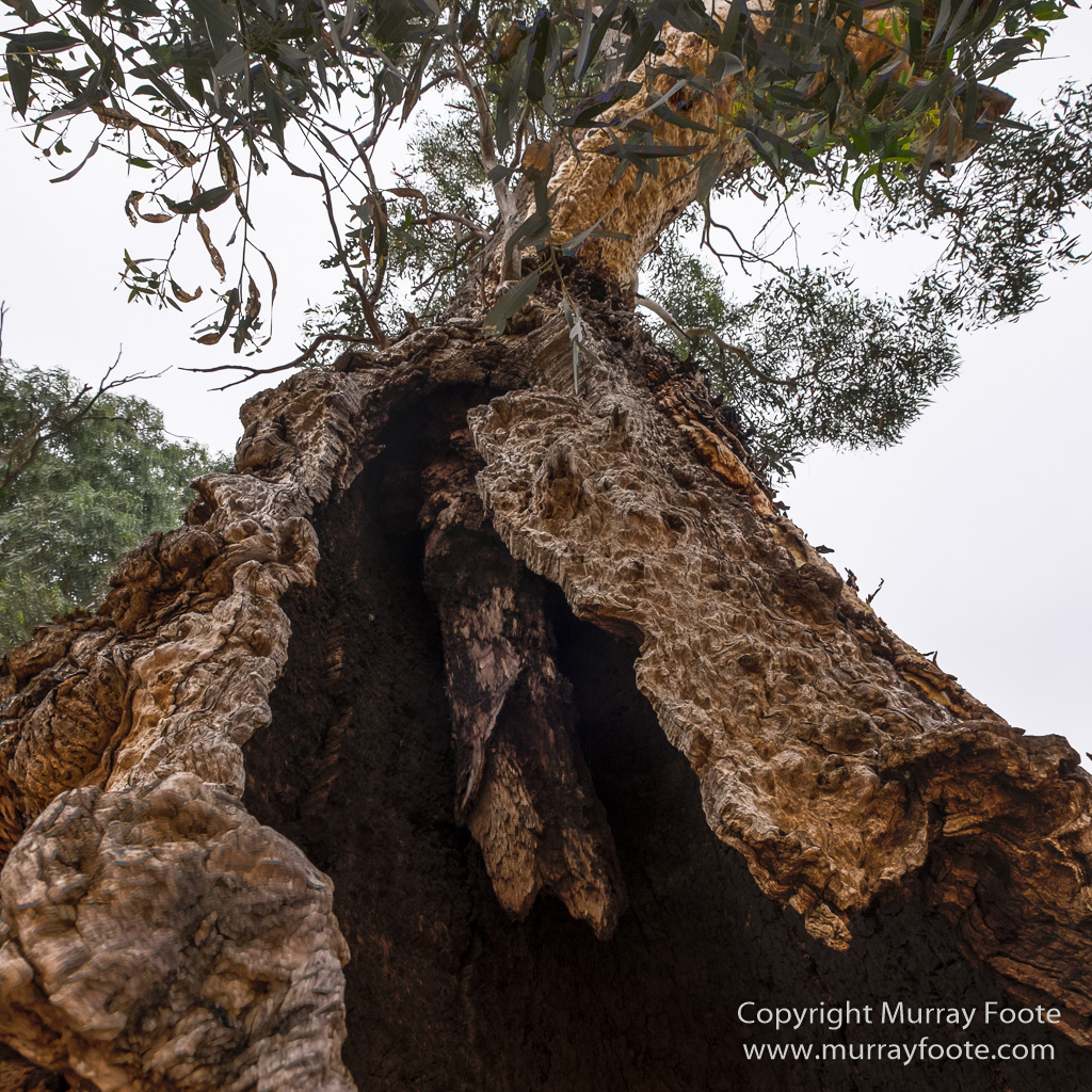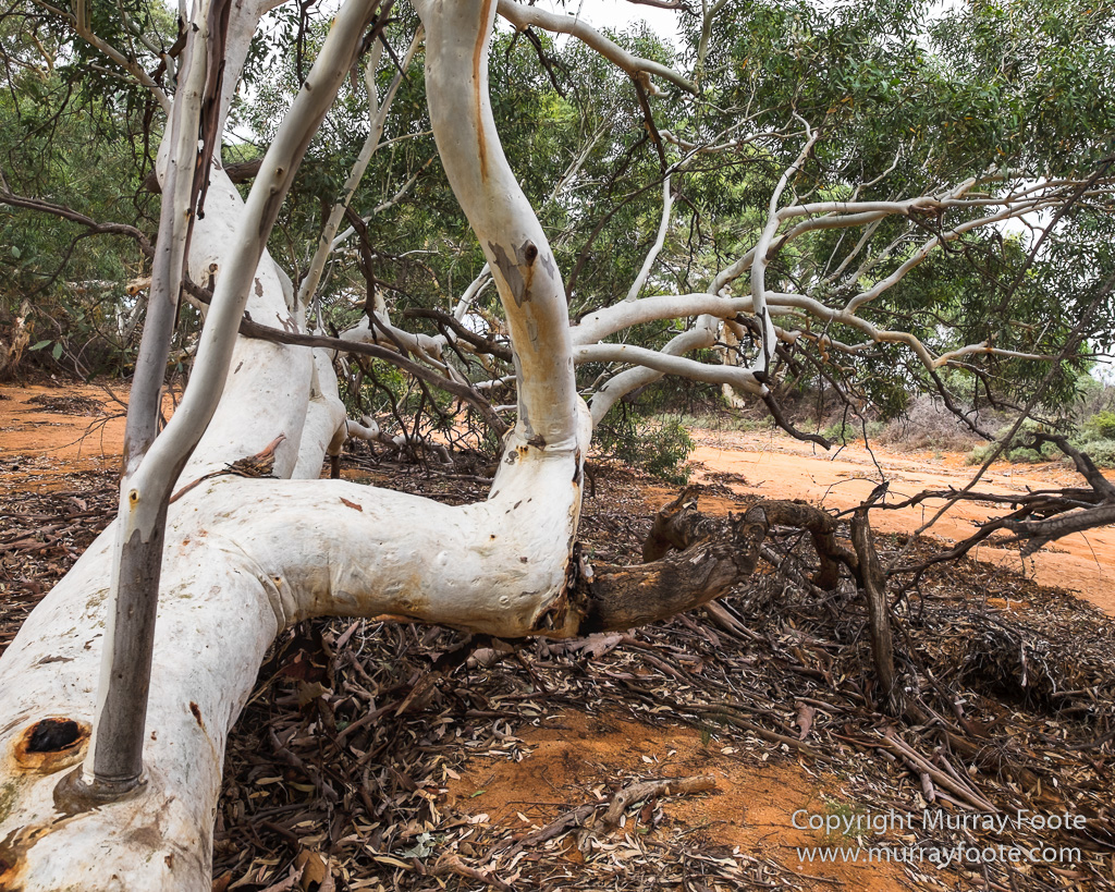 Here is a tree with a tenacious hold on life, still alive notwithstanding losing most of its lower trunk. The waterhole was close by. I did not photograph it because it was dry, though there were places where kangaroos had been digging for water in the sand.