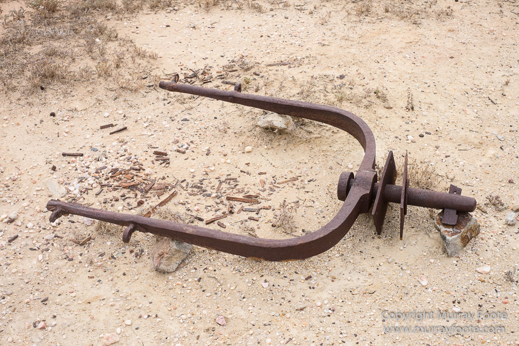 We stopped at the Dome Rock Copper Mine, in production from 1908 to 1969, producing 250 tonnes of copper over that period. This trench was used in processing the ore. First they crushed the ore and separated it into piles. Then they pumped acidic water from the bottom of the mineshafts over the piles. This caused copper to separate out in solution at the bottom of the piles. That liquid was then removed to a concrete vat and combined with ribbon iron to form a copper cement. Transport costs were high from such a remote location so this allowed them to transport a more concentrated copper product.