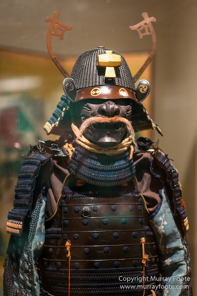 18th century helmet and suit of armour (doramu type), Japan, Edo period (iron, brass, leather, lacquer).