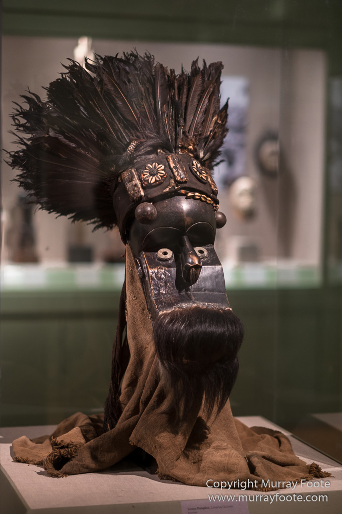 Poro Society horizontal mask, Loma Peoples, Liberia/ Guinea border (wood, cotton, monkey fur, cowrie shells, feathers, leopard skin, metal, seeds).