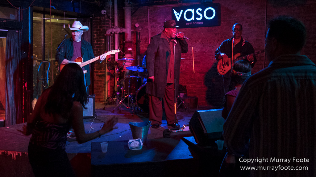 People on the dance floor powered by Willie Lockett & the Blues Crewe. Another great blues band at a Frenchmen St venue (in this case, Vaso). They have previously gone by the name of The All-Purpose Blues Band. Willie Locket has been around for a long time, having played trumpet with Professor Longhair in the 1960s and the members of his band have similar depth of experience.