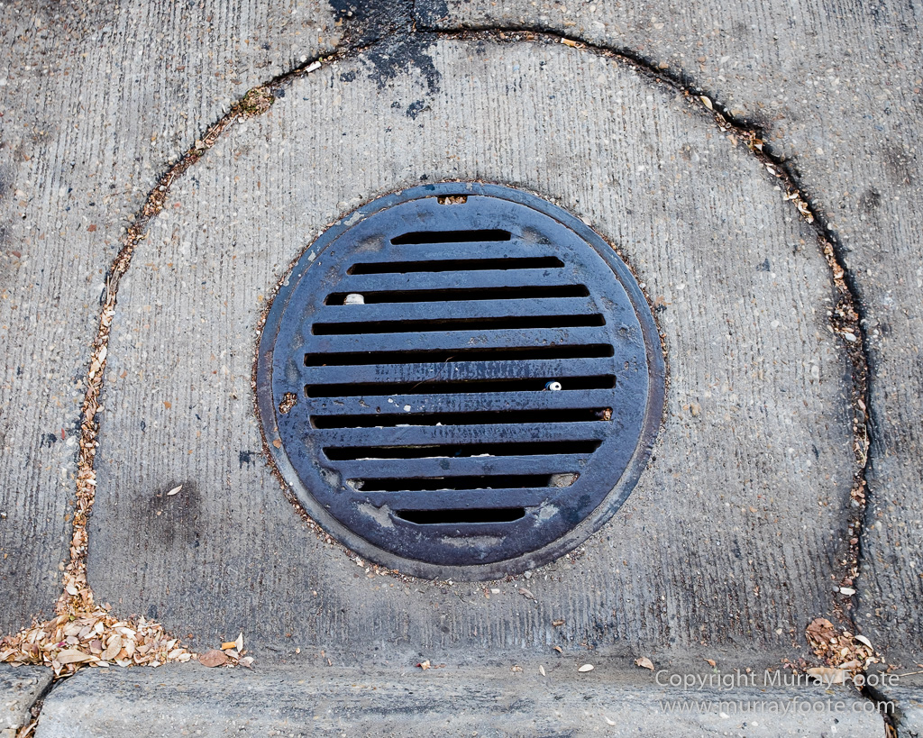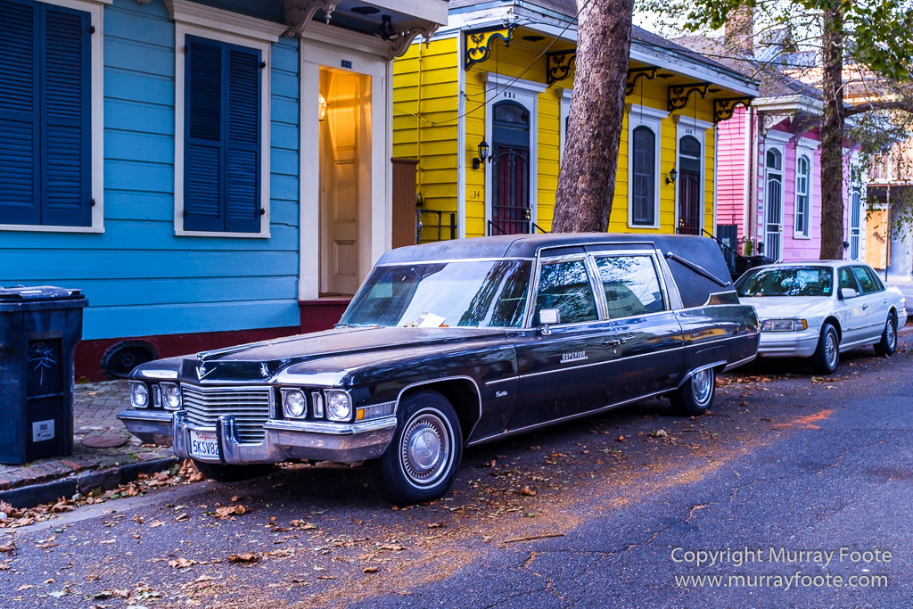 Architecture, Cadillac Hearse, Drain covers, Faubourg Marigny, Marigny, New Orleans, Photography, Street photography, Travel, USA .