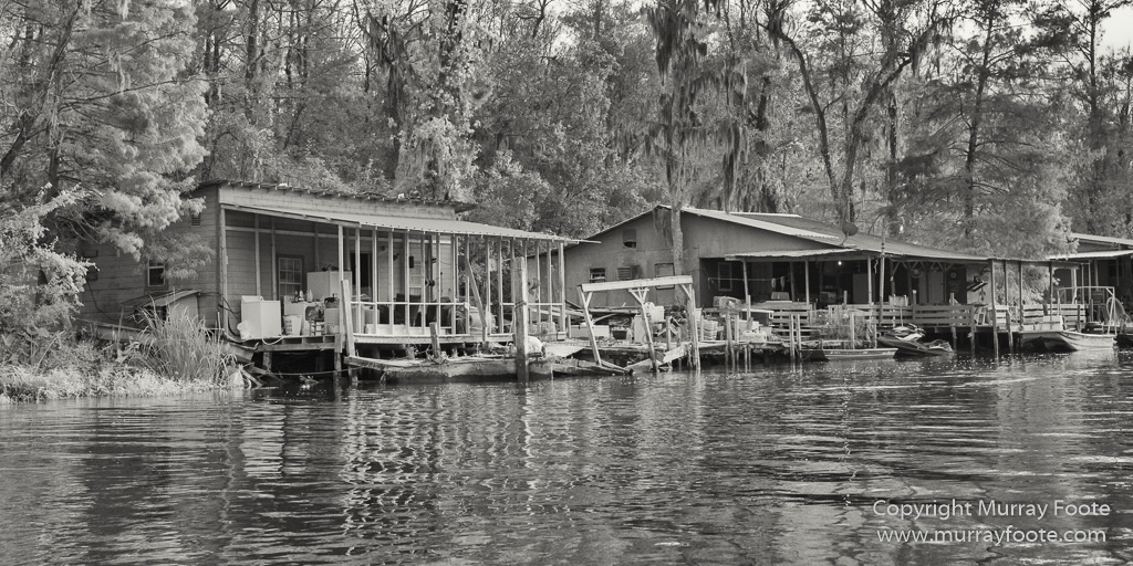 Here are habitations deep inside the bayou. It is a monochrome post because two thirds of the underlying images were infrared and one third regular and I decided to skip colour.