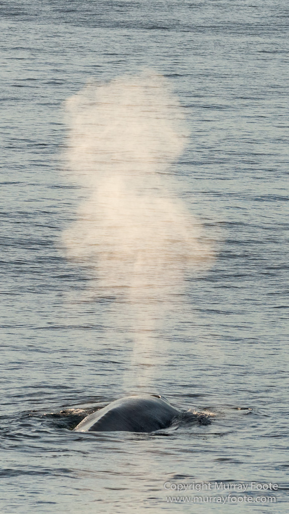 It is much easier to photograph a blue whale than a humpback whale because they swim along in a straight line and surface several times before going down.  This means it is easy to predict where it may come up again and may also account for why they were hunted almost to extinction by the early 20th century.