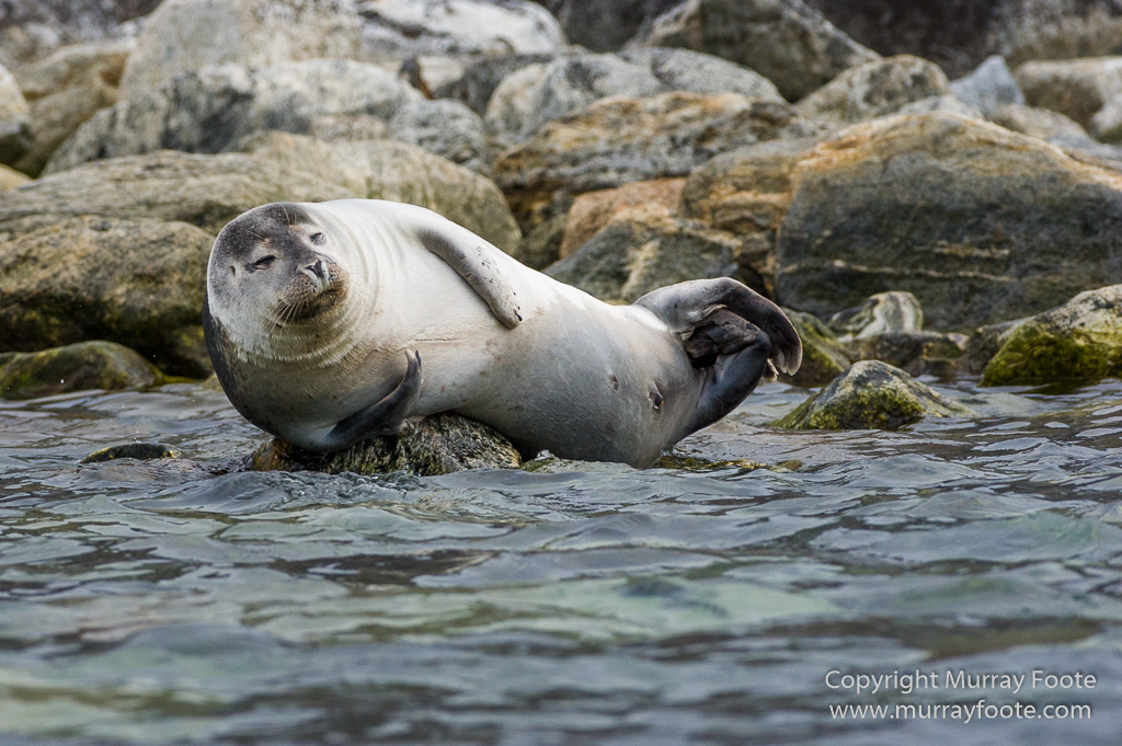 I still had impaired mobility and wasn’t racing round as much as the others.  So Don, the expedition leader, who had decided to reconnoitre another area in a zodiac, invited me along.  This proved a very fortuitous opportunity.  We encountered a herd of harbour seals relaxing on the rocks.  As I was the only photographer in the zodiac, I was able to get much better images than would have been possible in a full zodiac.