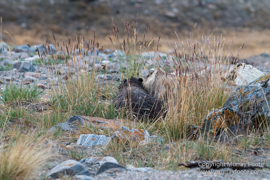 Musk ox calf on the left; dead mother on the right.