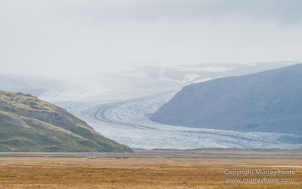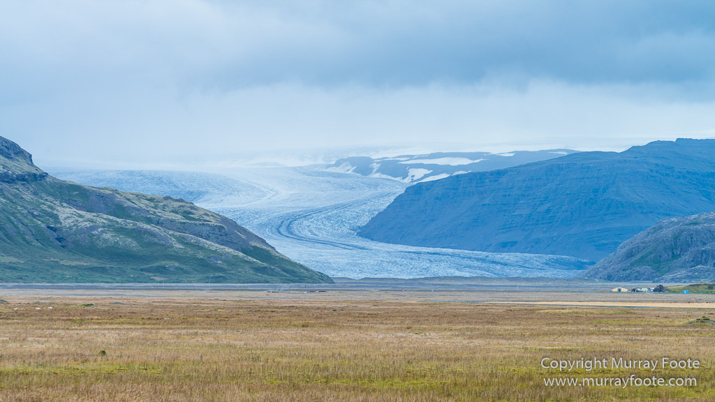 Close to the south west coast of Iceland is Vatnajökull, the largest ice cap in Iceland. there are several volcanoes underneath it and more than twenty outlet glaciers. In some places these are quite close to the coast. This is Hoffellsjökull Glacier. The two mountains in the foreground are Svínafell to the left and Geitafell to the right.