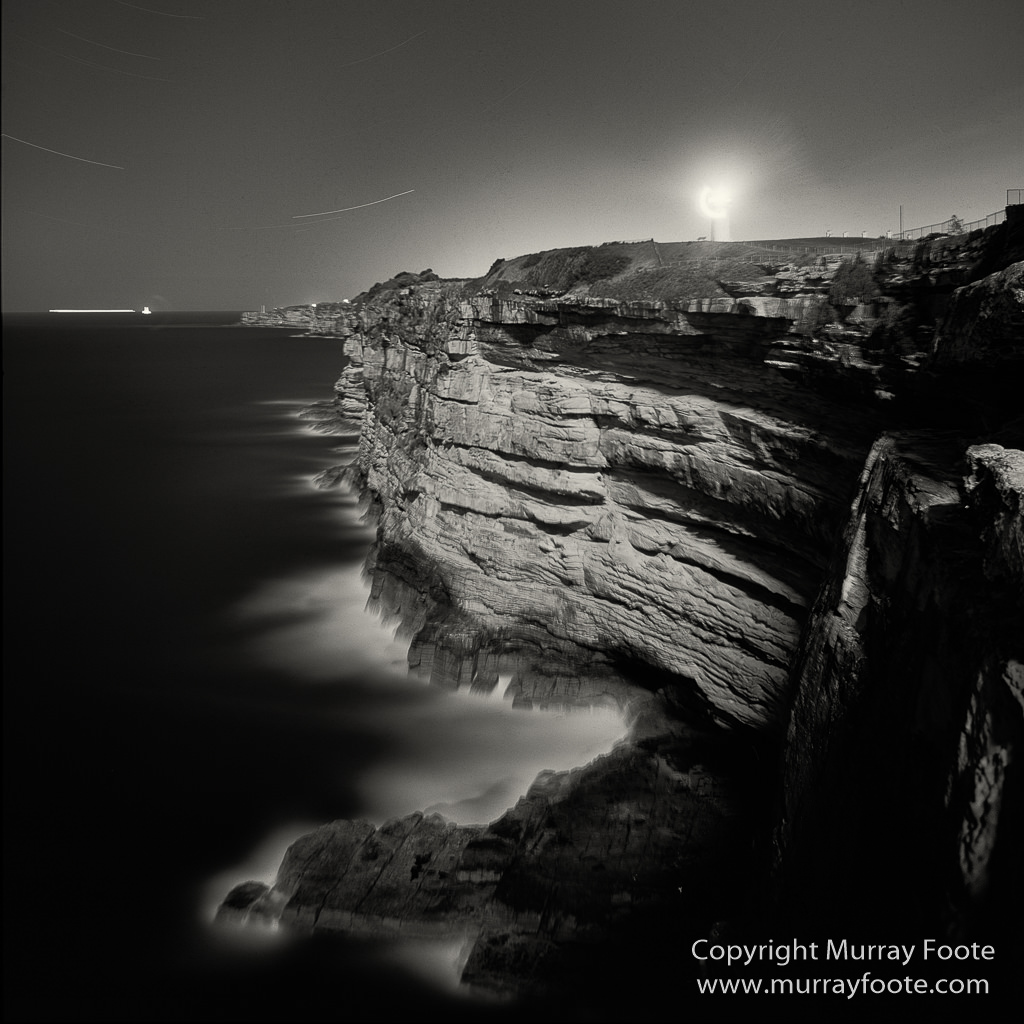 Macquarie Lighthouse and Cliffs during night.