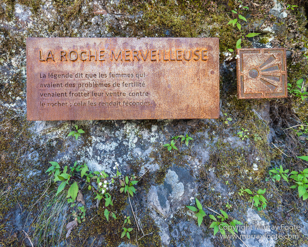 I stopped at La Roche Merveilleusse and climed the stairway to the top.  The sign says “The legend says that women who had fertility problems came rub their belly against the rock; This made them fertilized”.
