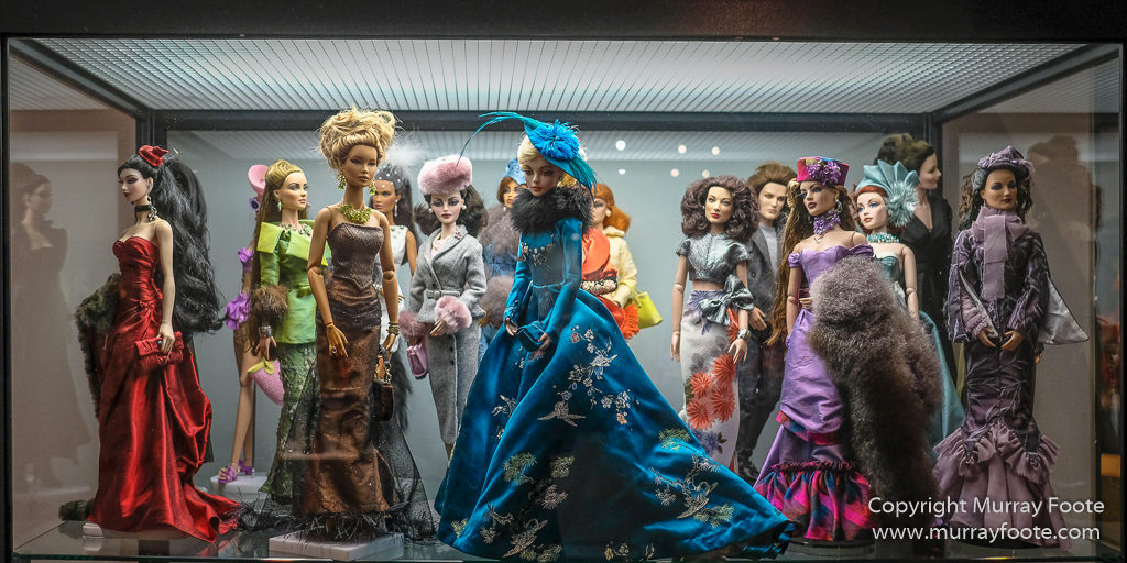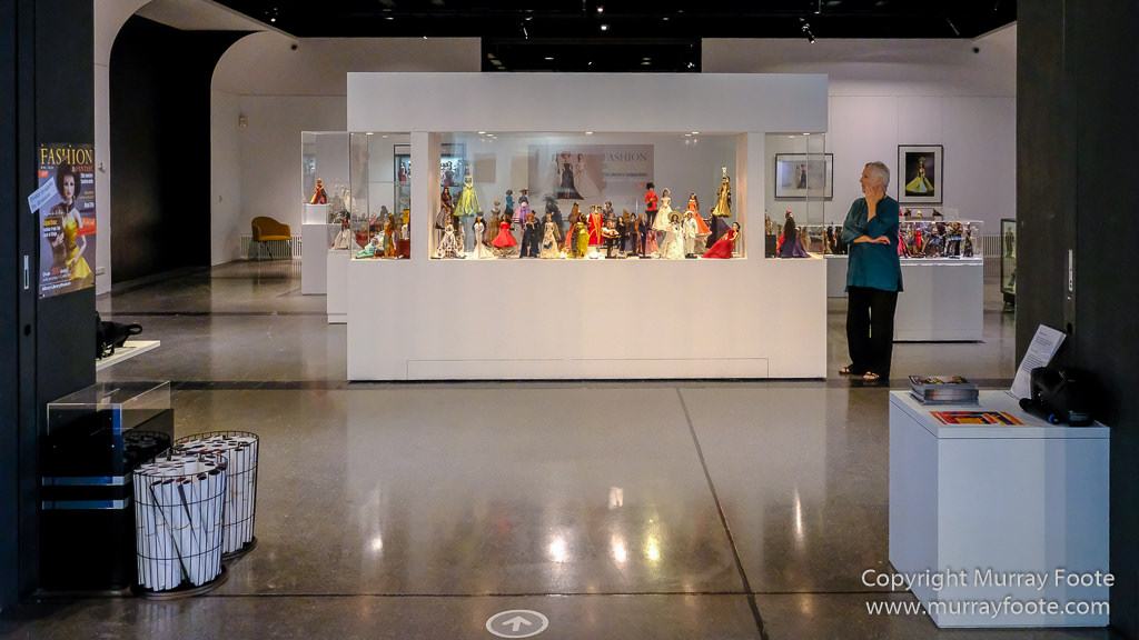 This is Julie Manley‘s exhibition of fashion dolls at Albury LibraryMuseum. The exhibition was previously held at Canberra Museum and Gallery in 2015. Most of the costumes were sewn and most of the dolls were painted by Julie.