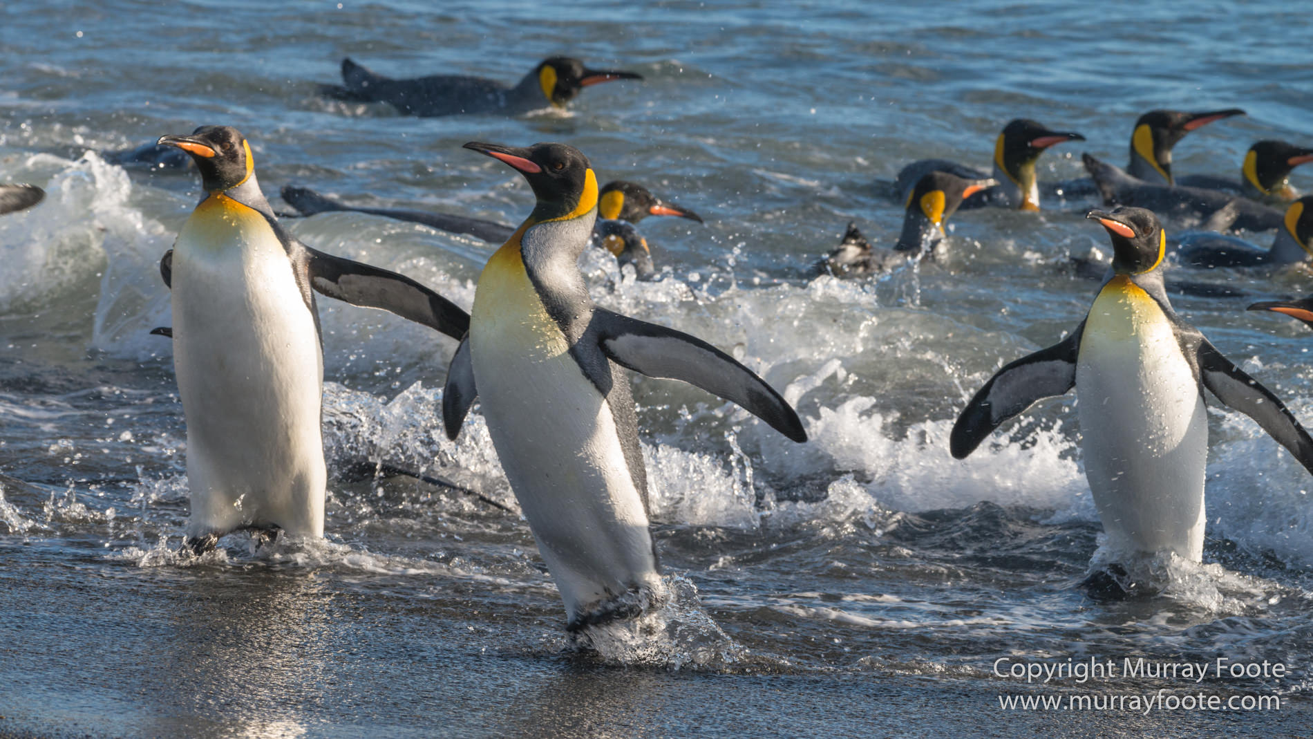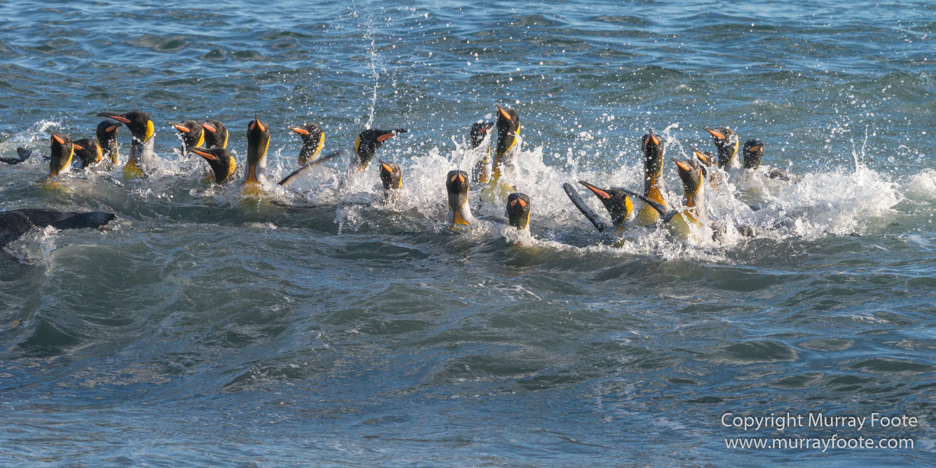 Down now at the edge of the sea, there were many king penguins swimming around in dense rafts, perhaps hunting shoals of fish.