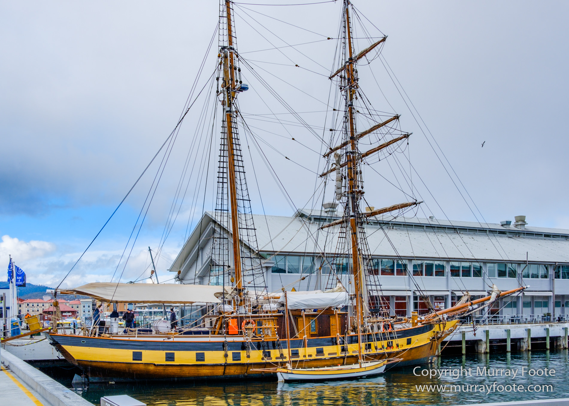 Back on the Hobart waterfront.  I paced it out and this is a 70 foot ketch, of similar size to the one we were soon to sail on.  This is very different though.  Although modern, it is a hybrid replica of ships from say the eighteenth century.  The purpose is for commercial day trips from Hobart.