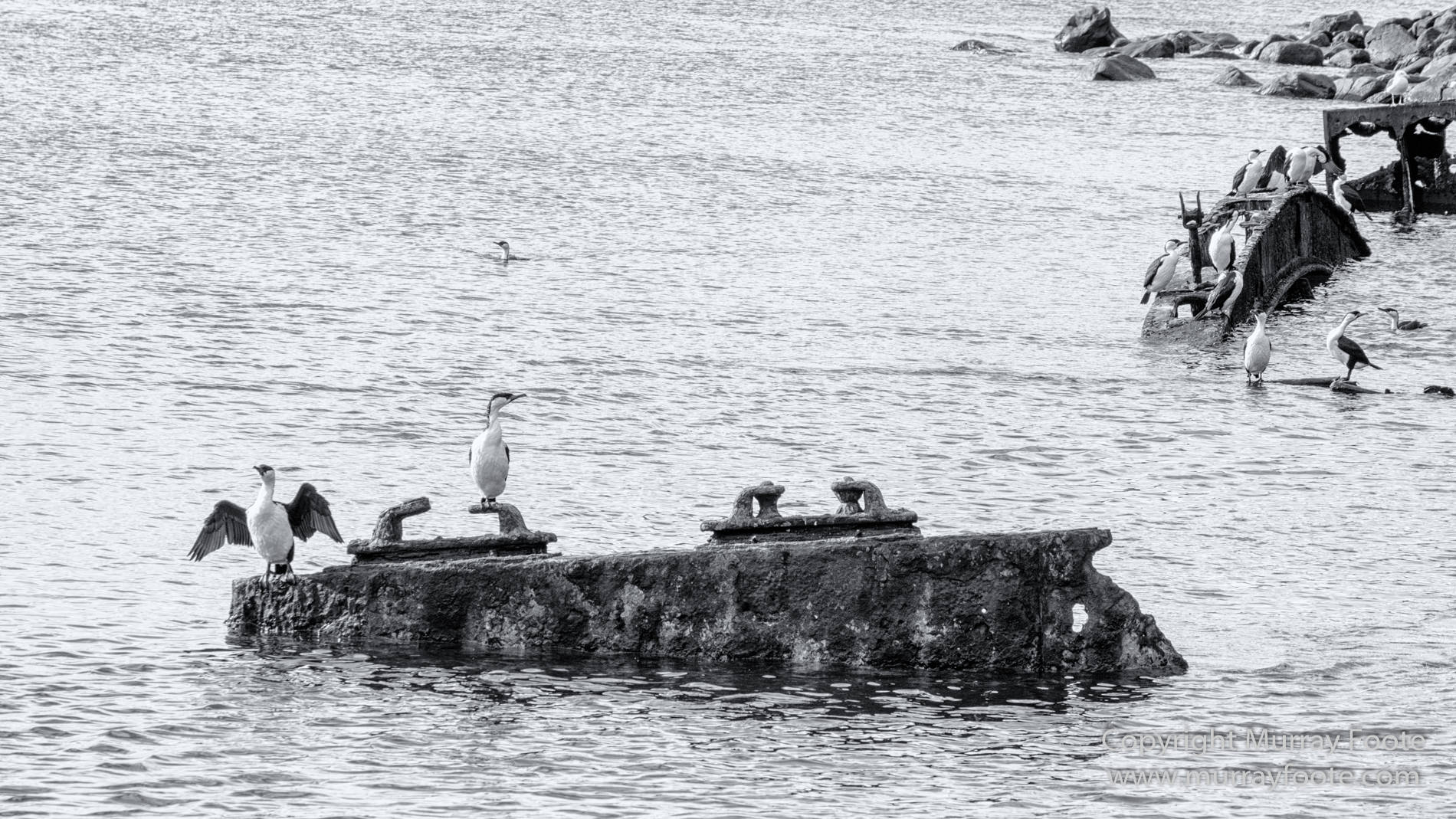 Cormorants on breakwater, Canoe Bay.