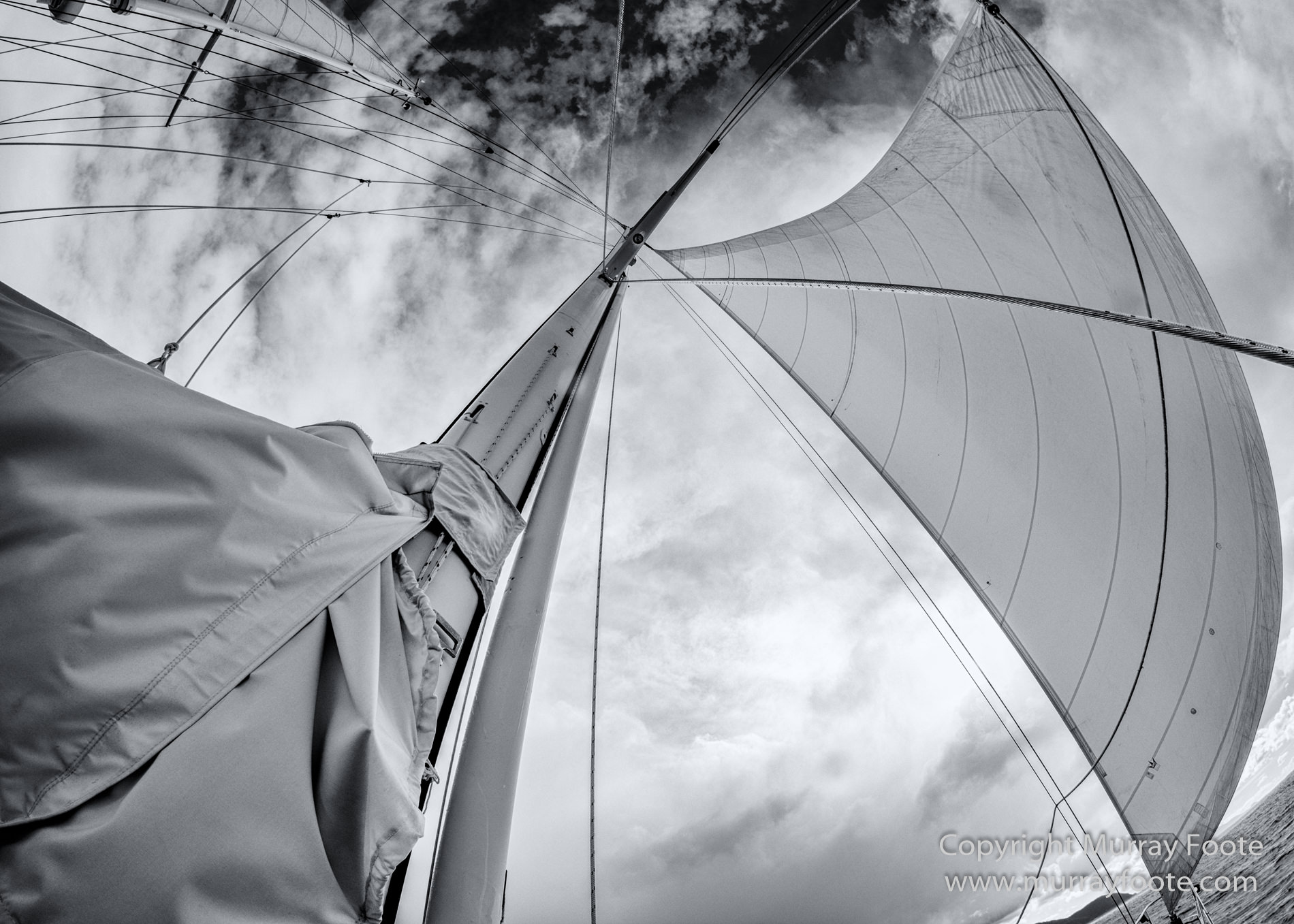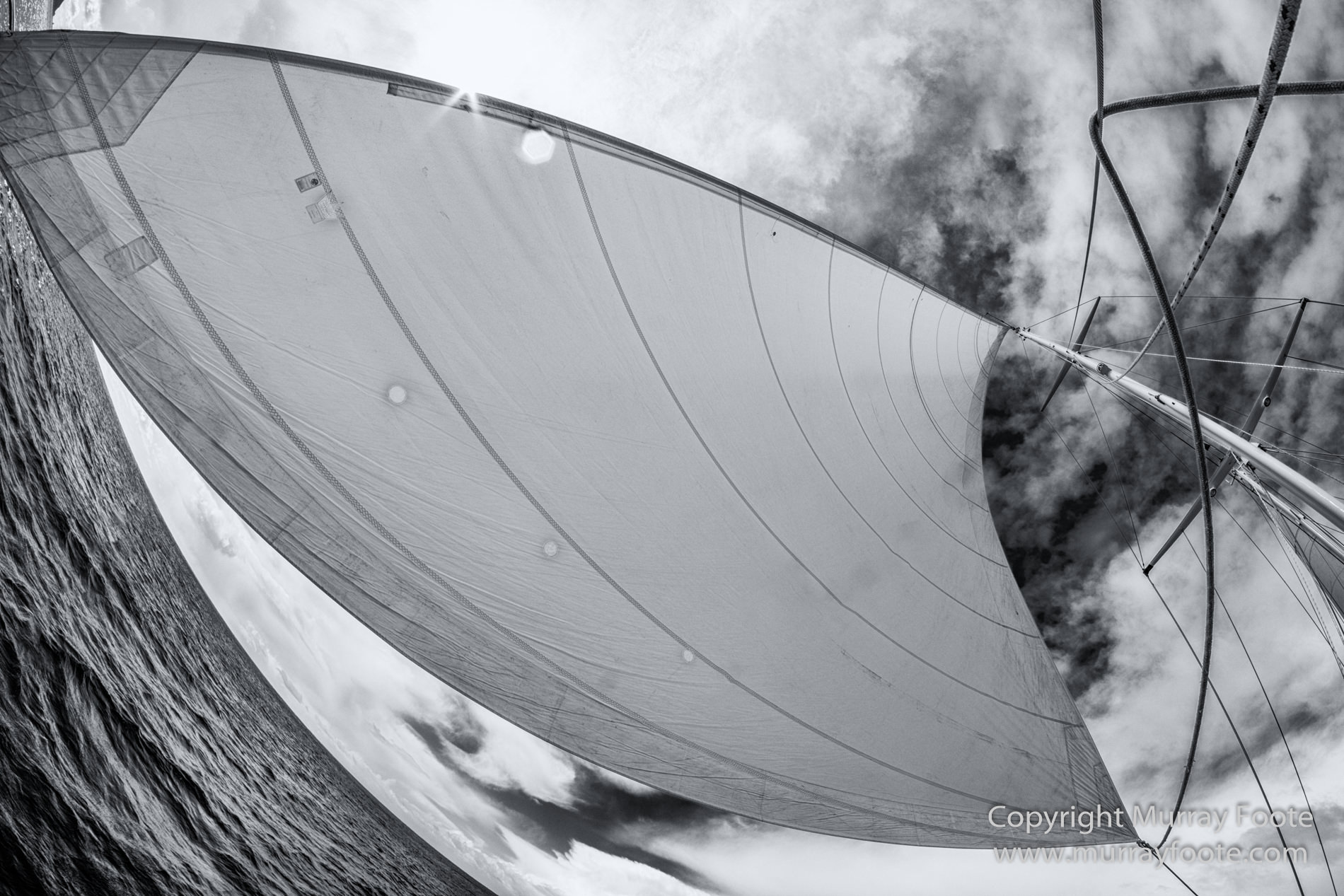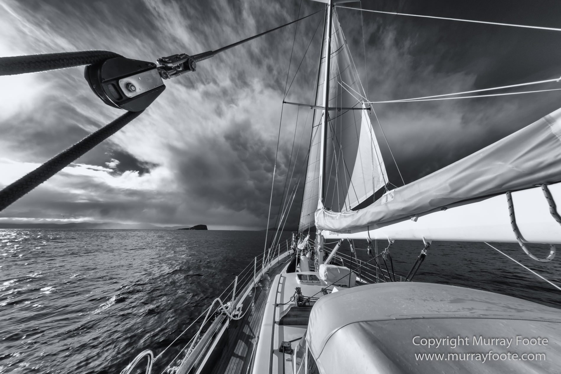 Under sail and under way.