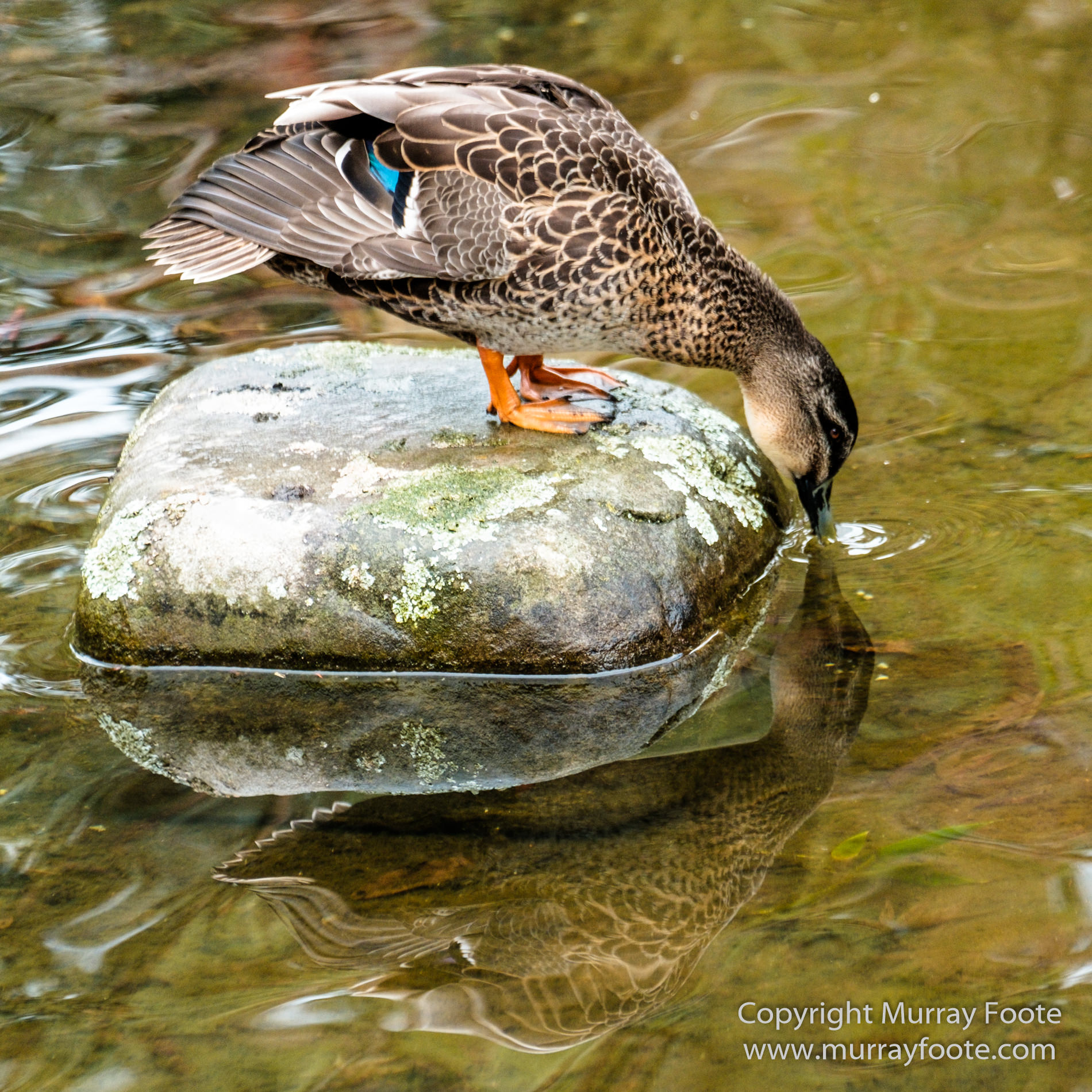 I walked around to the other side of the garden and decided to photograph the waterfall. The duck had noticed I was no longer photographing him on the stone so had wandered across to the waterfall to pose for me there.