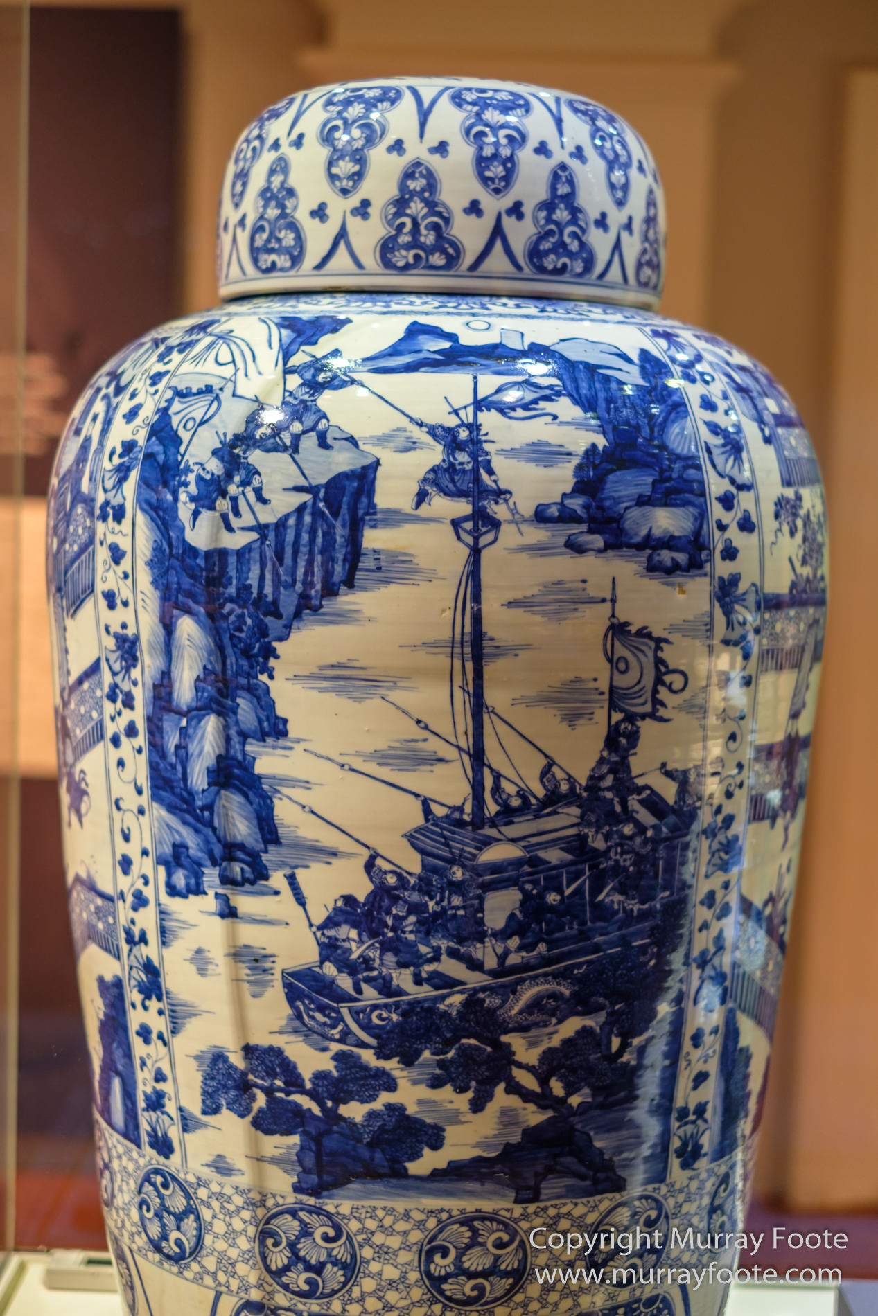 Chinese far from Jingdezhen, around 1700. The man on the crow’s nest of the ship could be General Xue Rengui, who invaded the Laiodong Peninsula for Tang Emperor Taizong. The Laiodong Peninsula is just north-west of North Korea and is where in the nineteenth century Port Arthur was located. The war was against Goguryeo in 644AD. Goguryeo was a Korean kingdom incorporating what is now North Korea, the northern half of South Korea and the southern and central parts of Manchuria.