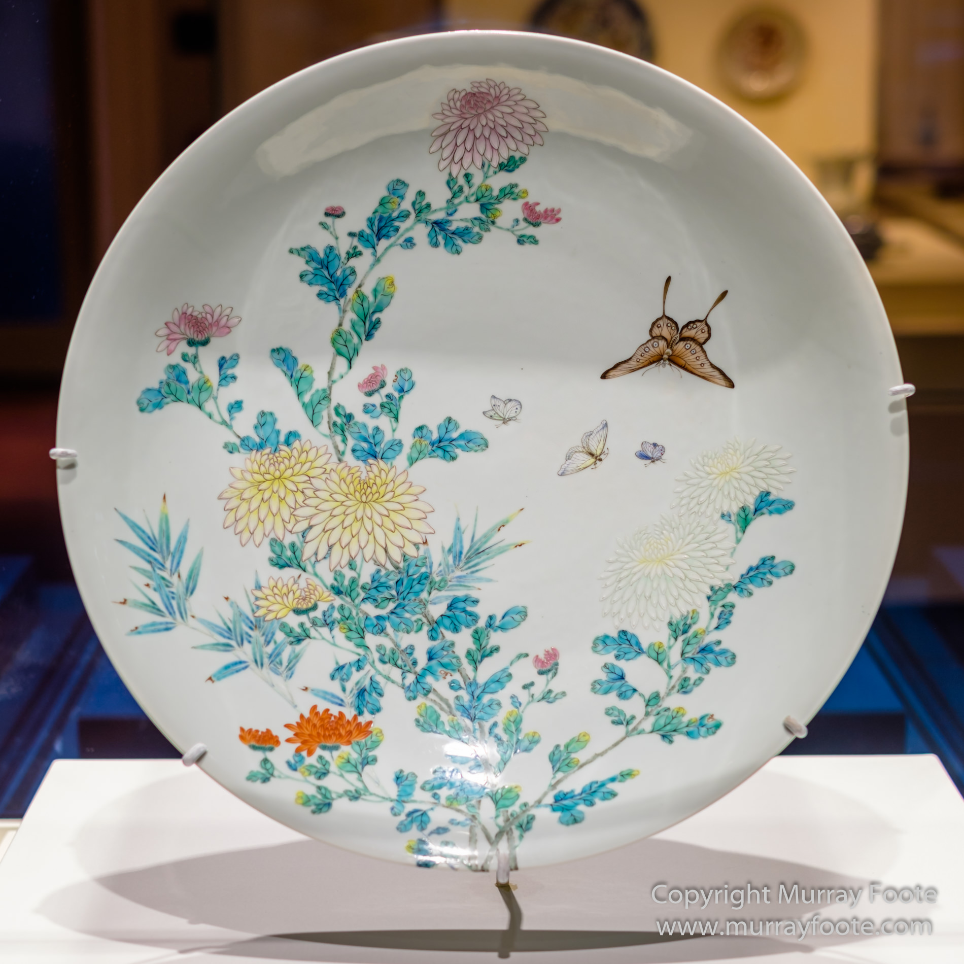 Chrysanthemum dish from Jingdezhen in China, 1723-1735 (during the reign of Yangzhen, the third Qing or Manchu emperor). Based on the naturalistic style of Yun Shouping (1633-1690), this is an example of what became the characteristic style of the Yangzhen period.