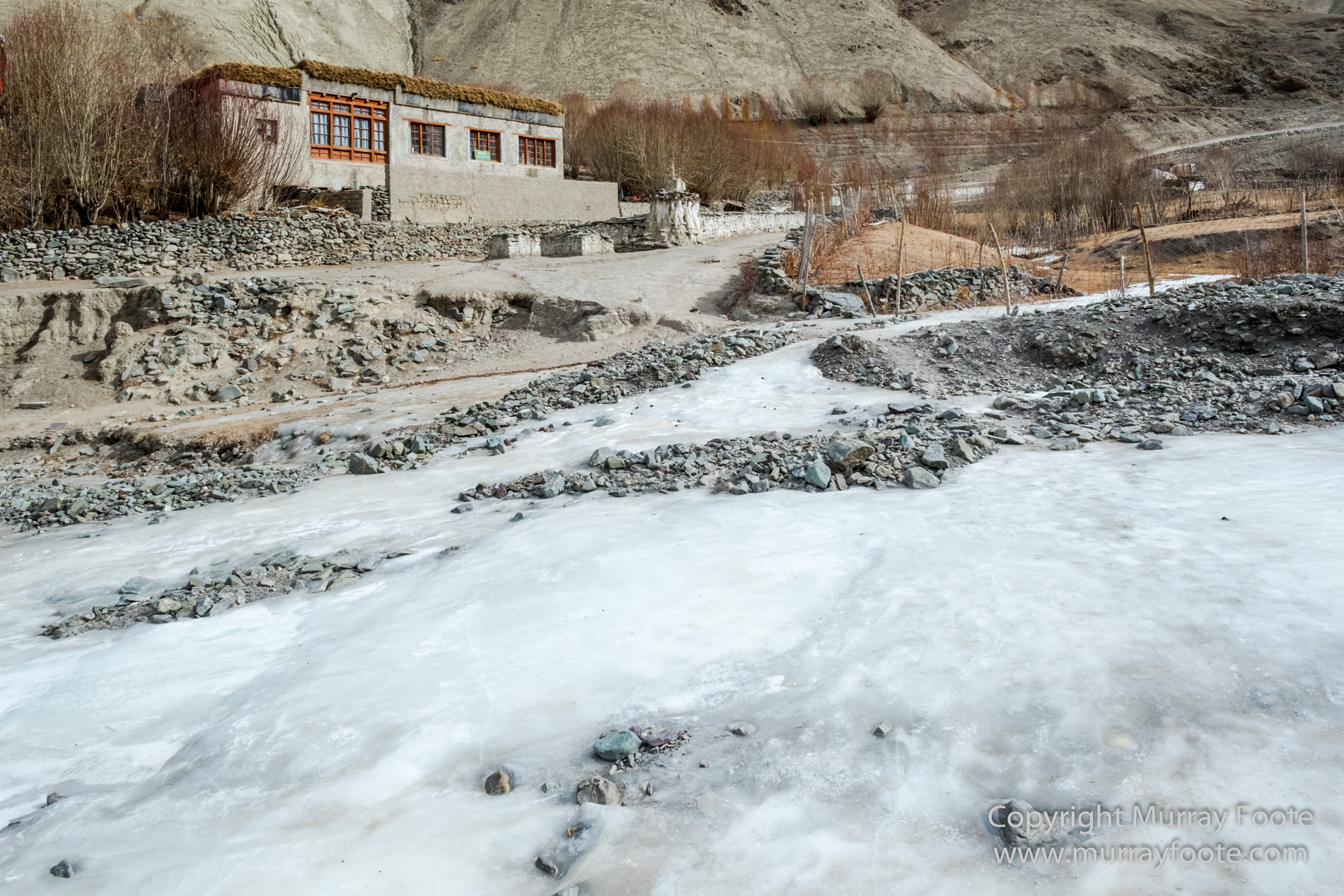 This is the route across the frozen river to the first house. There are two considerations here. First, the ice needs to be thick enough to walk on and second, it can be slippery and you don’t want to fall over. You can see footprints on the ice towards the right. In general you find a flat place to cross, watch the colour and consistency of the ice and if necessary, you can throw some handfuls of dirt on it. Disconcerting at first but almost normal after a while.