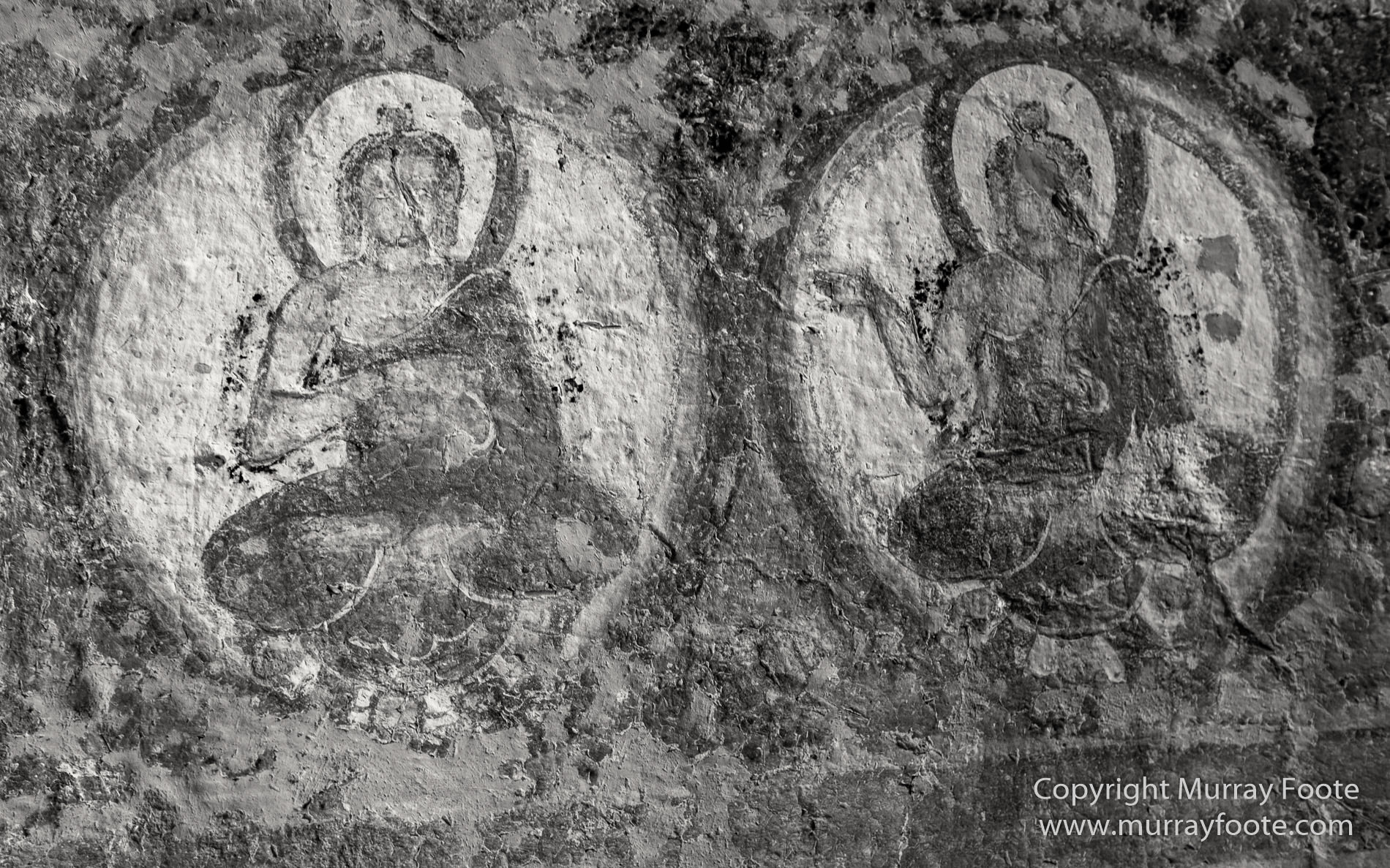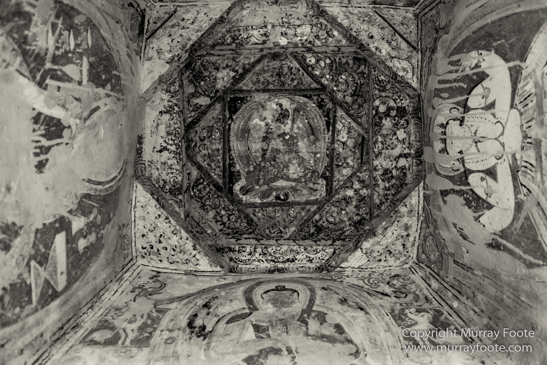 Ancient paintings looking up inside one of the recesses of a stupa, Alchi Monastery.