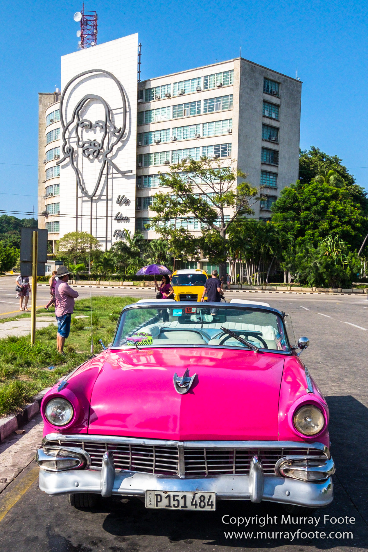 Back in the open air: 1956 Chevrolet in the foreground; Fidel in the background.