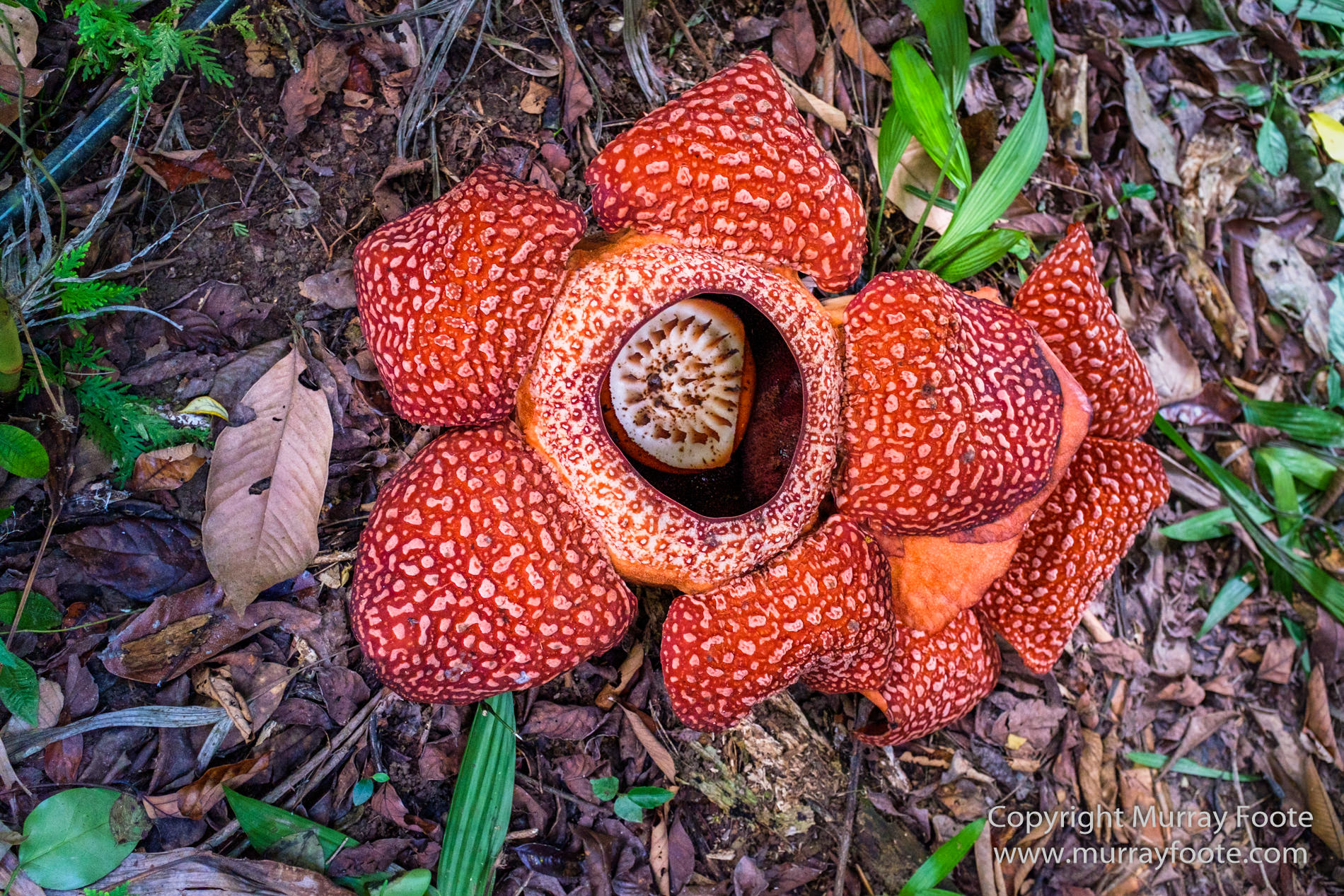 This is Rafflesia Arnoldii in flower, the largest rafflesia and also the world’s largest flower. From memory I think this one was 78cm in diameter (31 inches). They can reach over 100cm and weigh 10 kilograms (22lb). This flowering happens very infrequently. It takes nine months for a bud to get to florescence, and then the flower lasts only two or three days. The flower has five petals, so there is actually two of them here. Rafflesiae are also know as corpse flowers on account of their smell. Swedish entomologist Eric Georg Mjöberg described the smell in 1928 as “a penetrating odour more repulsive than any buffalo carcass in an advanced stage of decomposition”. I cannot personally attest to that as I have very little sense of smell.