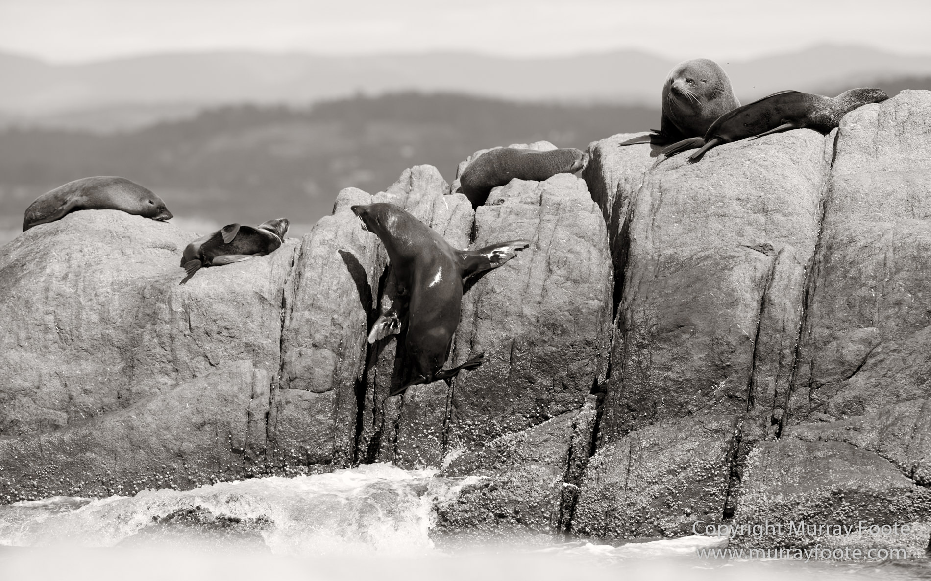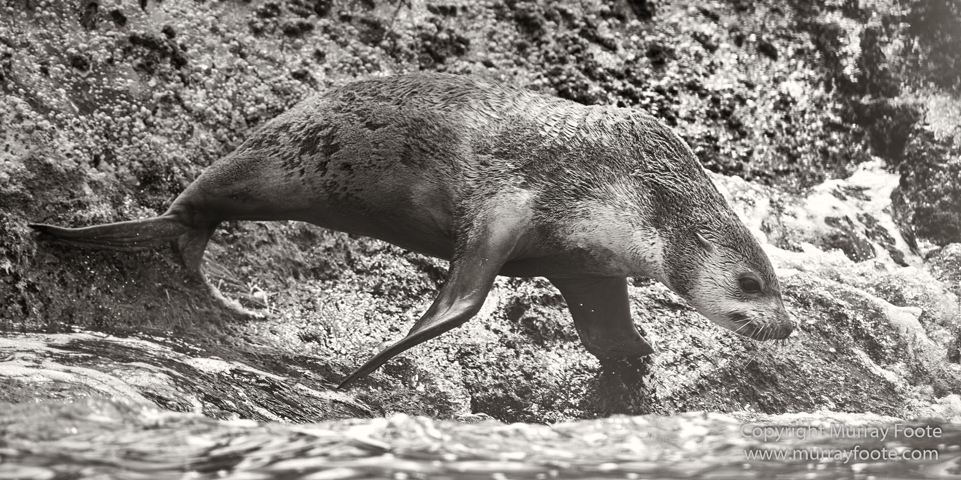 A seal launching into the sea.