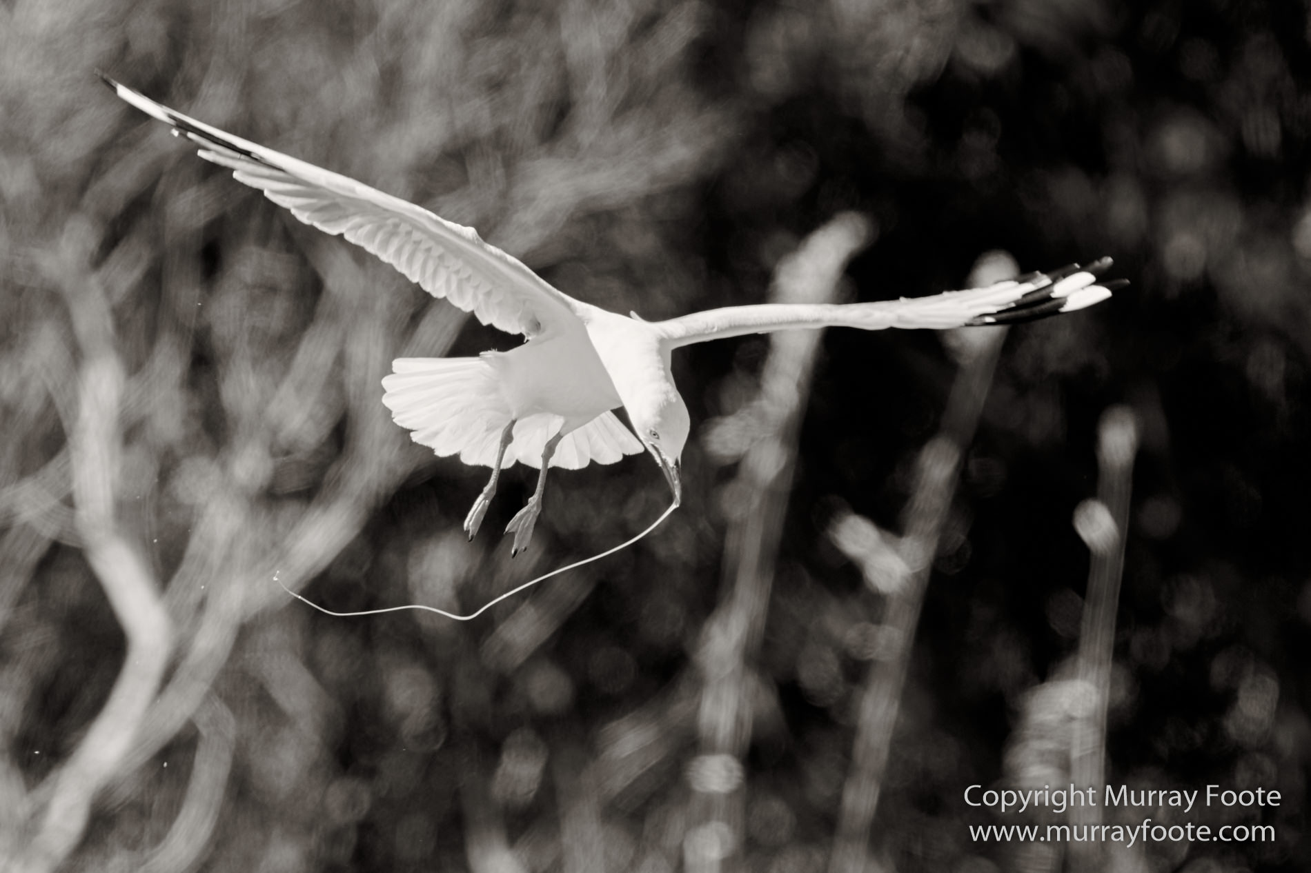 Silver gull and nesting material.