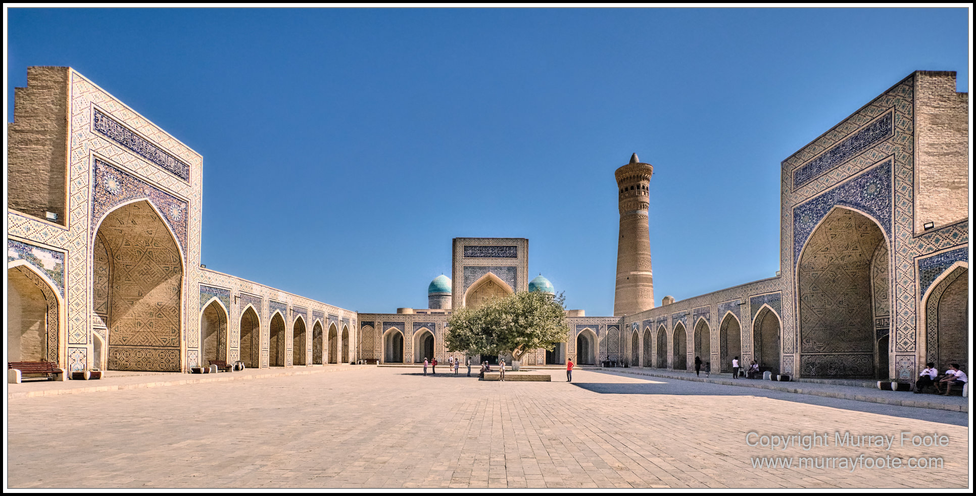Back outside the mosque to the Poi-Kalyan Ensemble. So the Amir-Allimkhan Madrasah is on the left, showing in this image only one of its two domes.