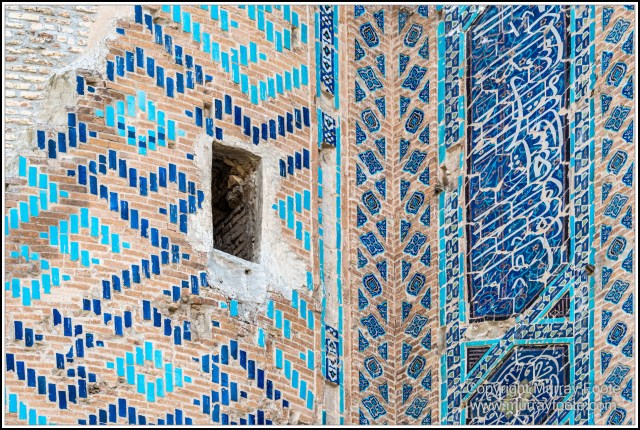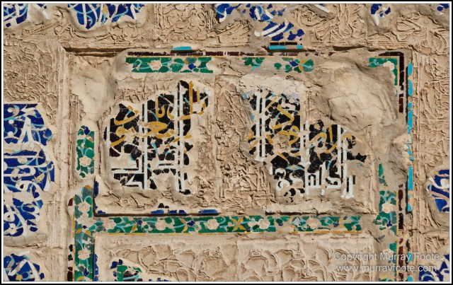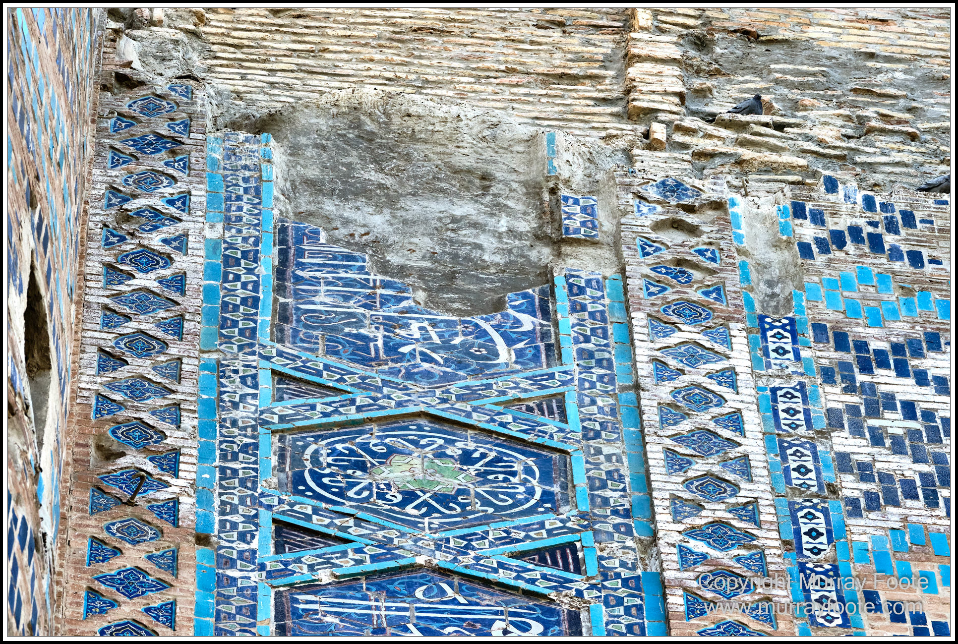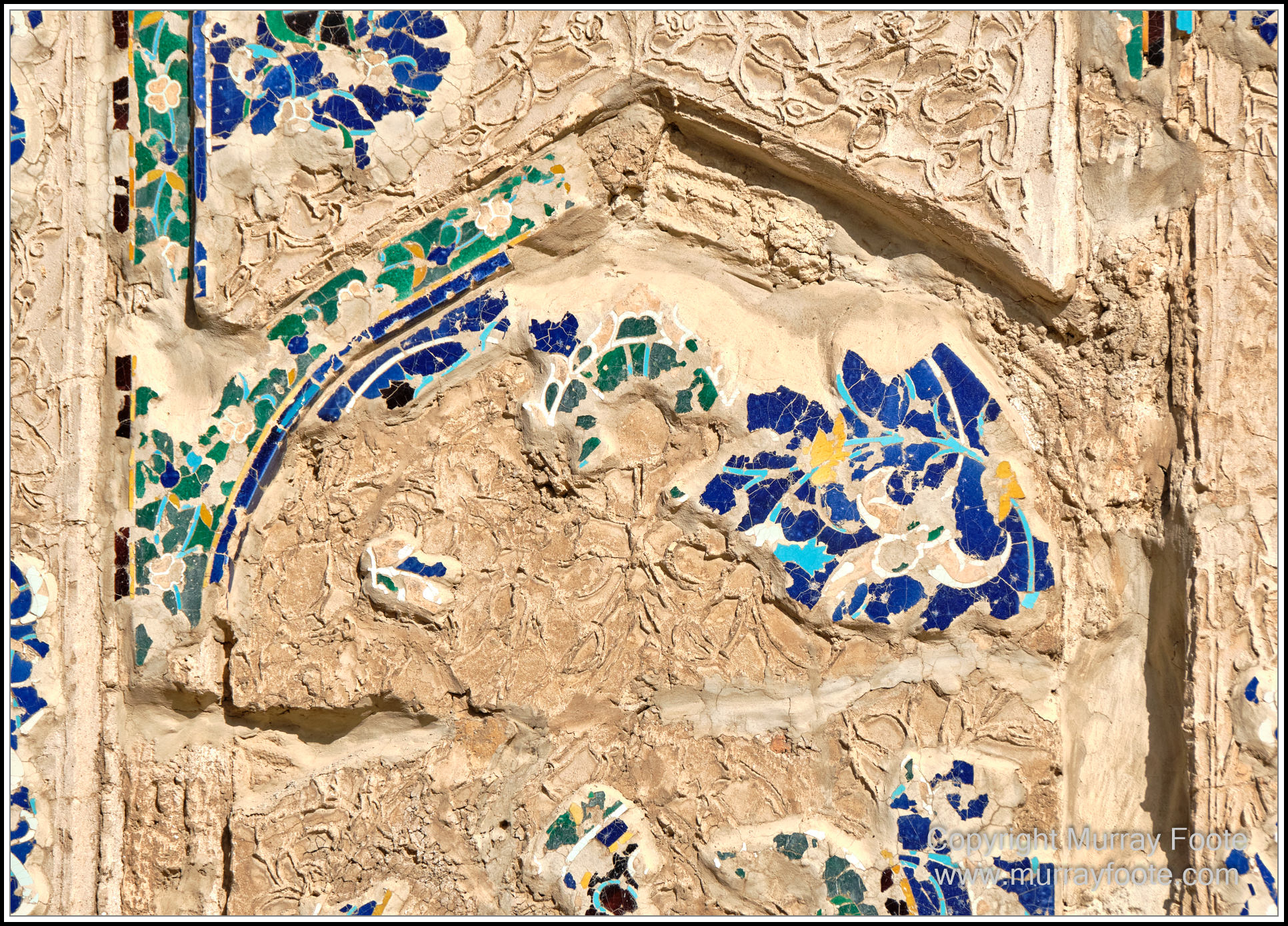 With a very long telephoto lens, I took photographs of details of the tiling on the pillars as I was walking in.  These decorations are unreconstructed, as efforts so far have focused on ensuring structural integrity.