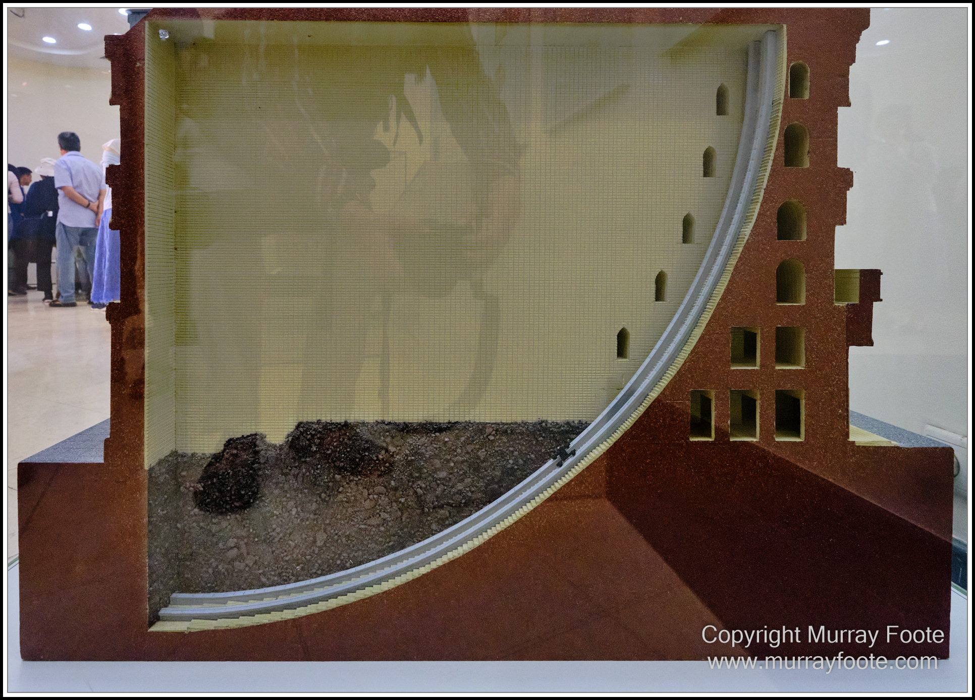 Inside this 13th century building was a meridional arc, or astrolabe, aligned north-south, for celestial measurements.  Since they took measurements using 60 degrees instead of the full 90 degrees available, it is also a sextant.  This is clearly not a working model because there is no viewing hole to the sky at the top.  I presume the little vertical windows on the back wall are for viewing the angle cast by the sun.  The rest of the building was rooms for scientists to confer and calculate, maybe even some to sleep in.