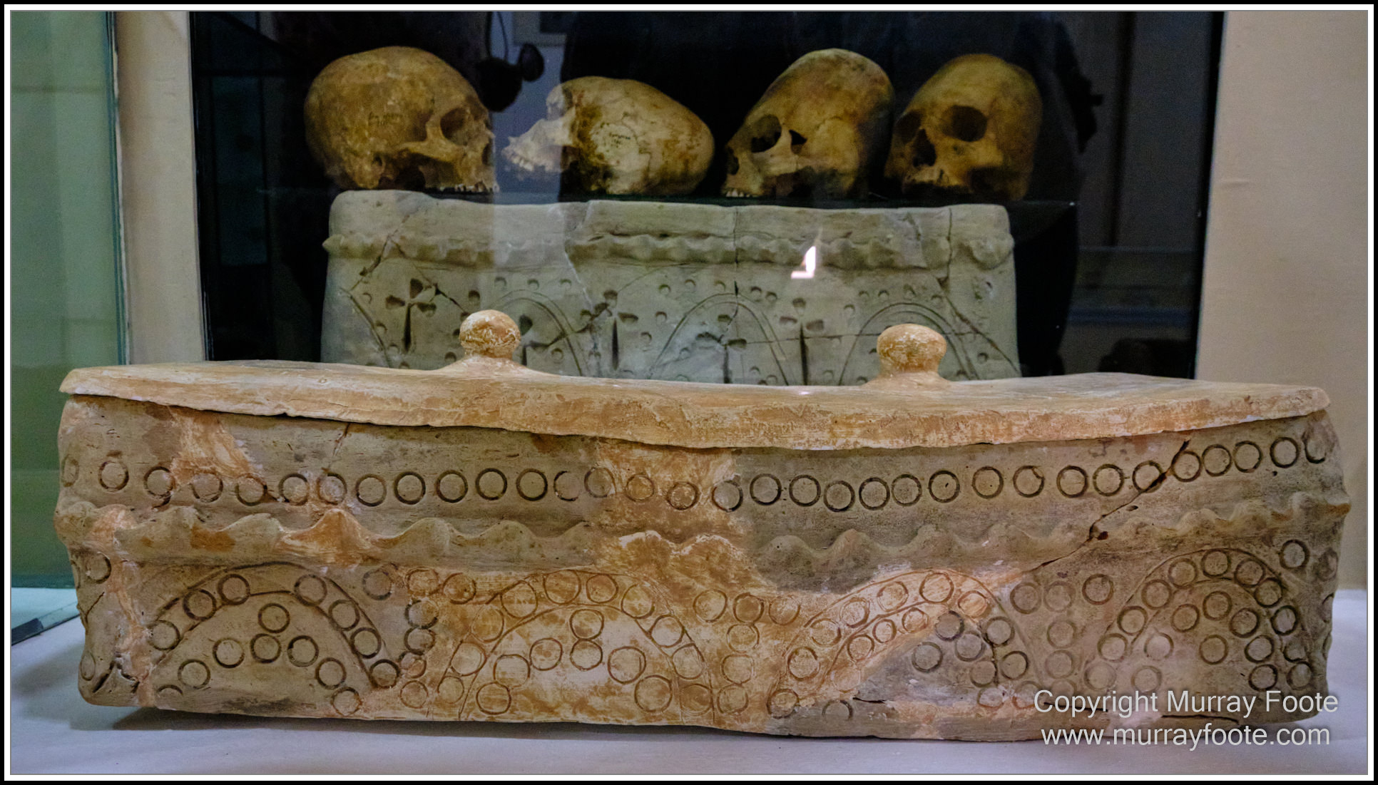Here we see ossuaries and skulls, from the sixth to the eighth centuries.  Some of the skulls exhibit cranial deformations that I had previously associated only with the Maya, but that I discover were performed in many cultures.  This practice was brought to Sogdia by the Yuezhi, who were driven out of China and established the Kushan Empire in Central Asia and India in the early first century.