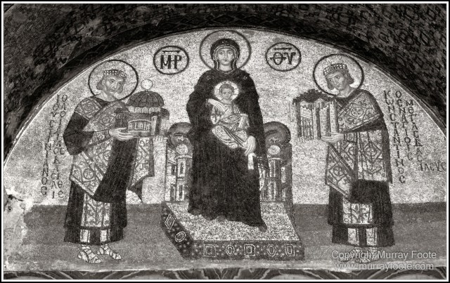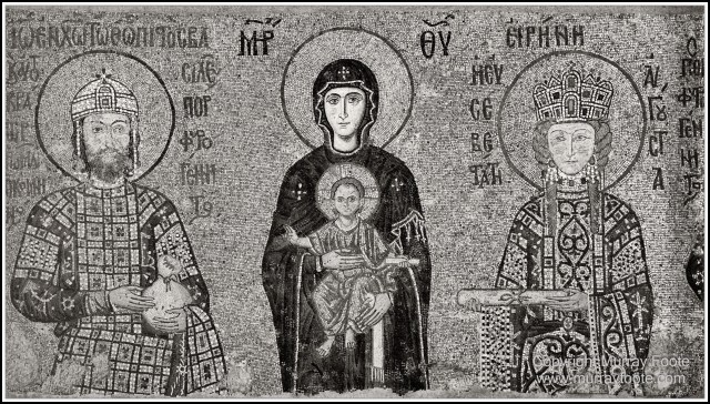 The Comnenus mosaic, dating from 1122, shows John II Comnenus (Emperor 1118 to 1143), Virgin Mary and Christ Child, and Empress Irene (from Hungary).
