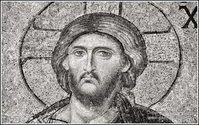 Closeup of Christ Pantocrator (or the all-powerful) from the Deesis Mosaic.