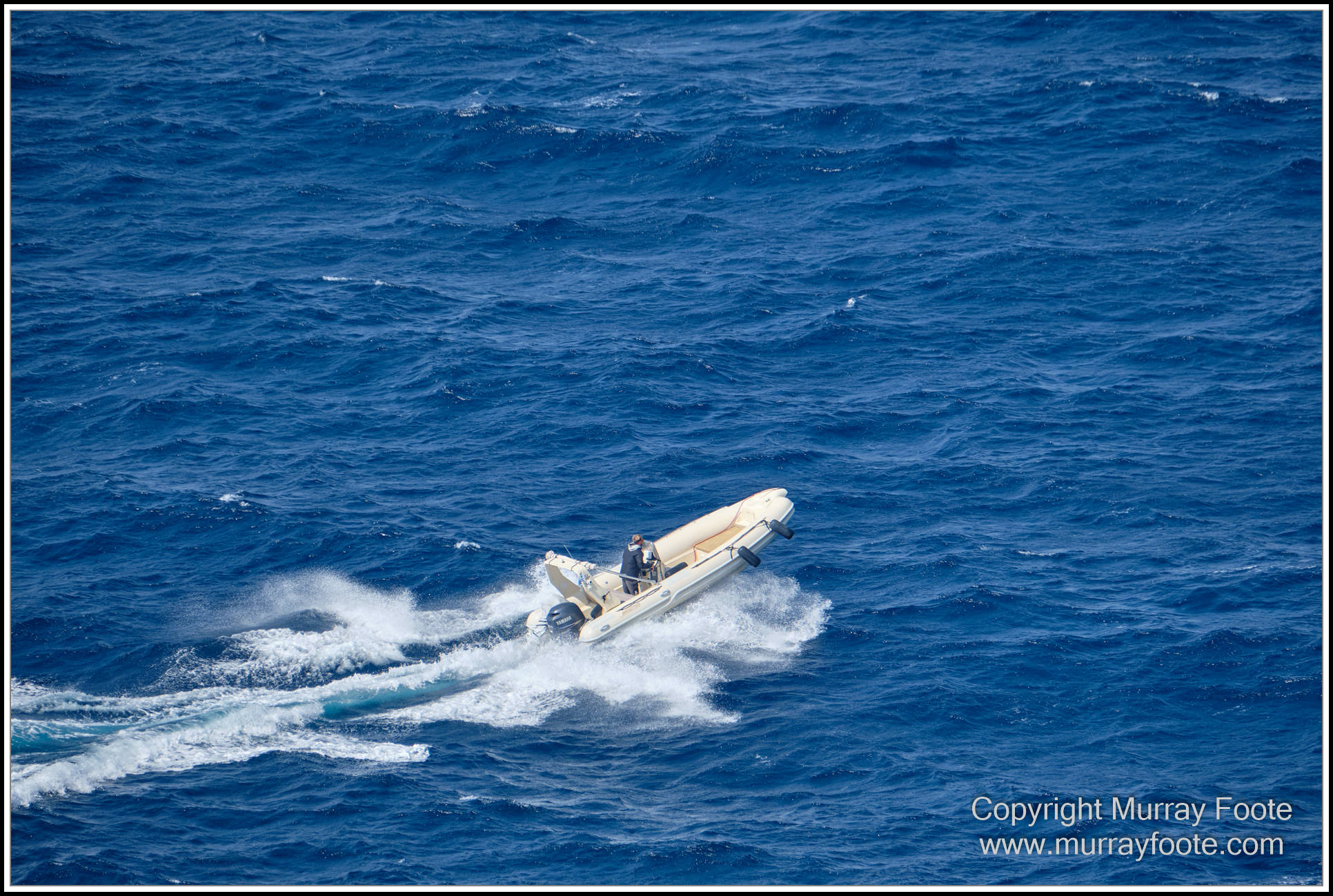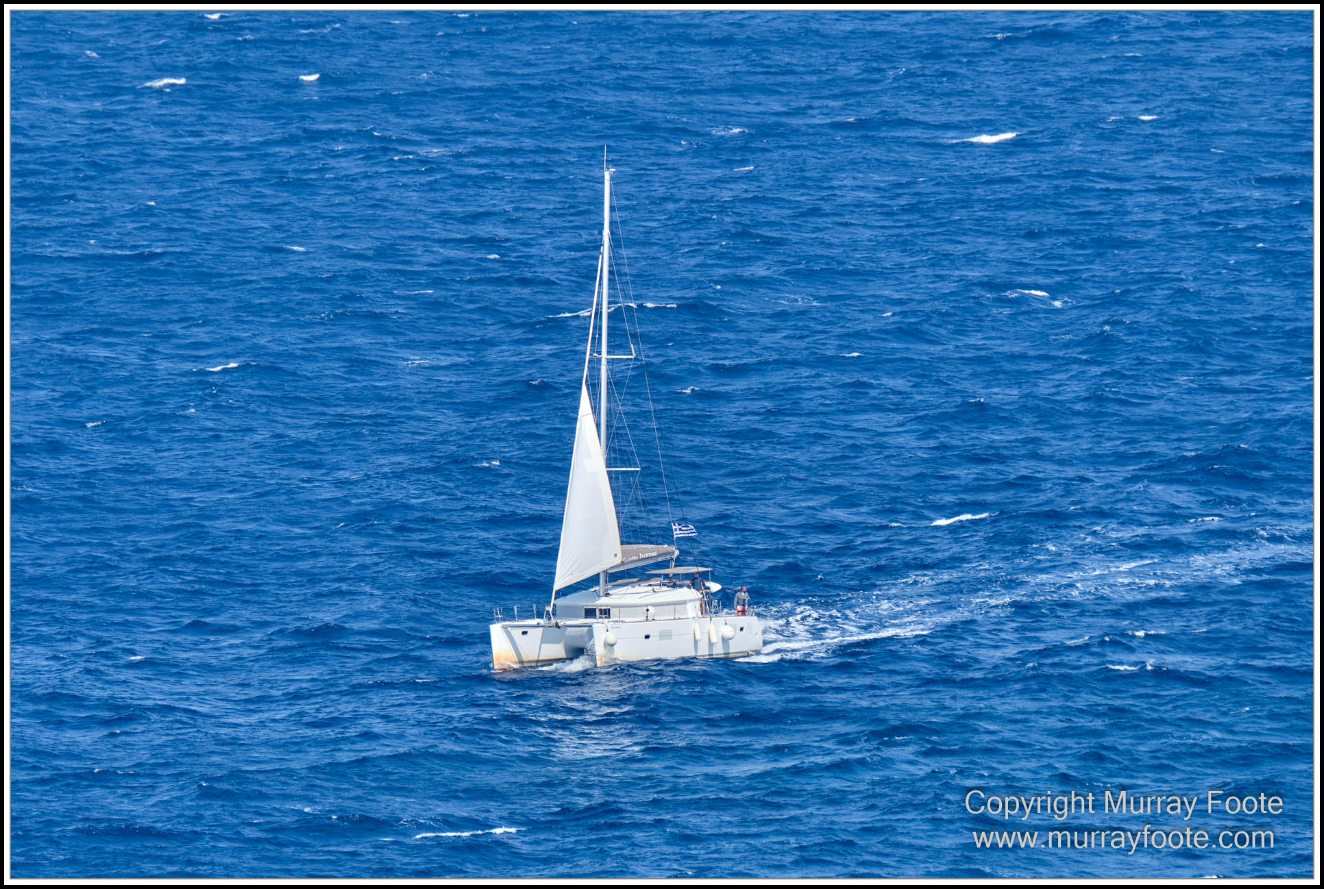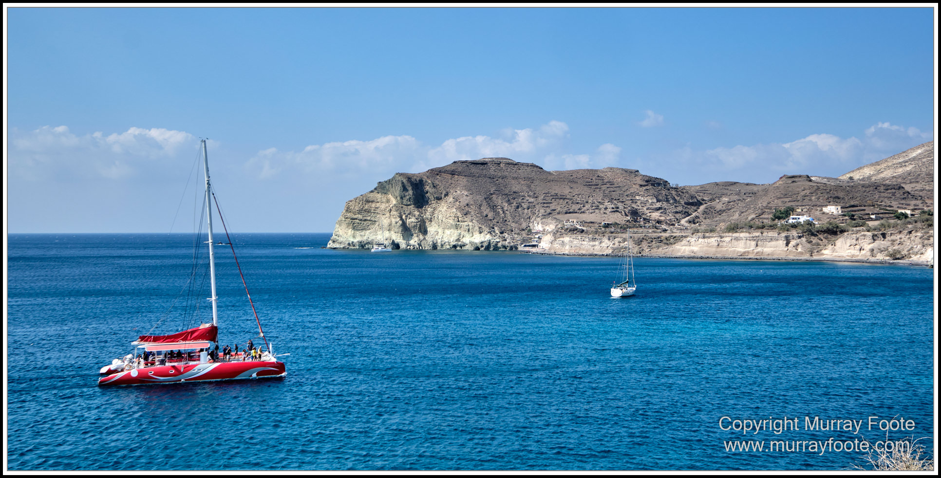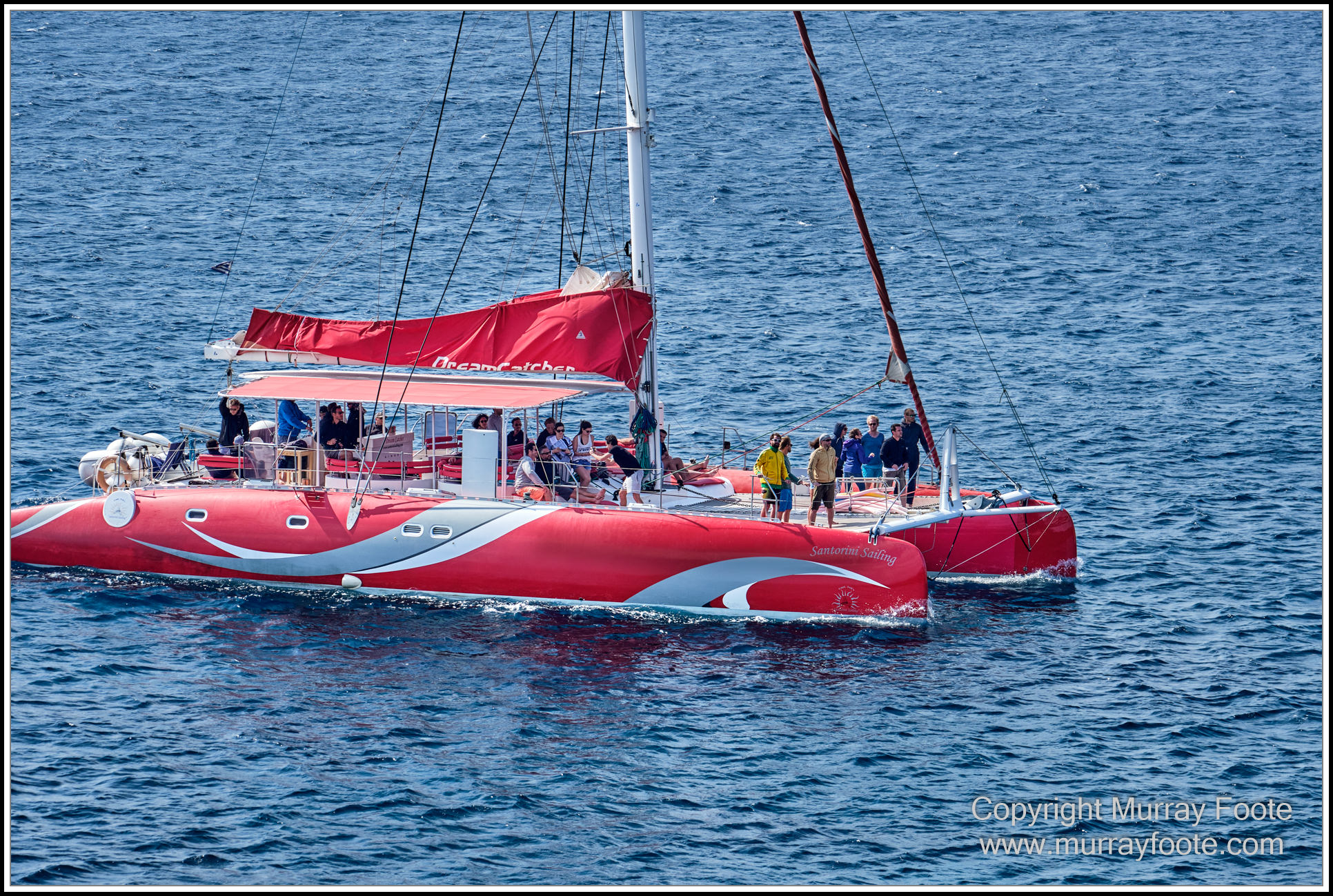 With an extreme telephoto view from the same location, you can see Caldera Beach and the same launch and catamaran.