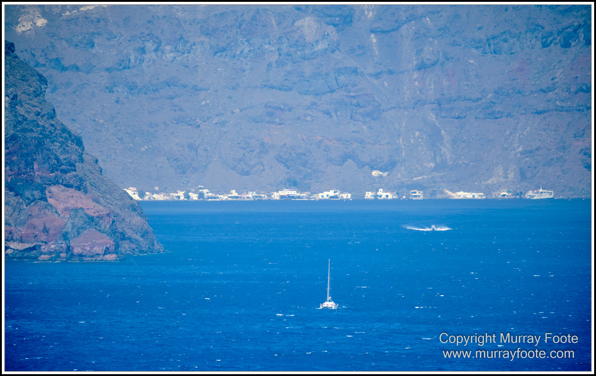This is a view of the caldera coast of the main island, looking south, from just past the port of Thira.