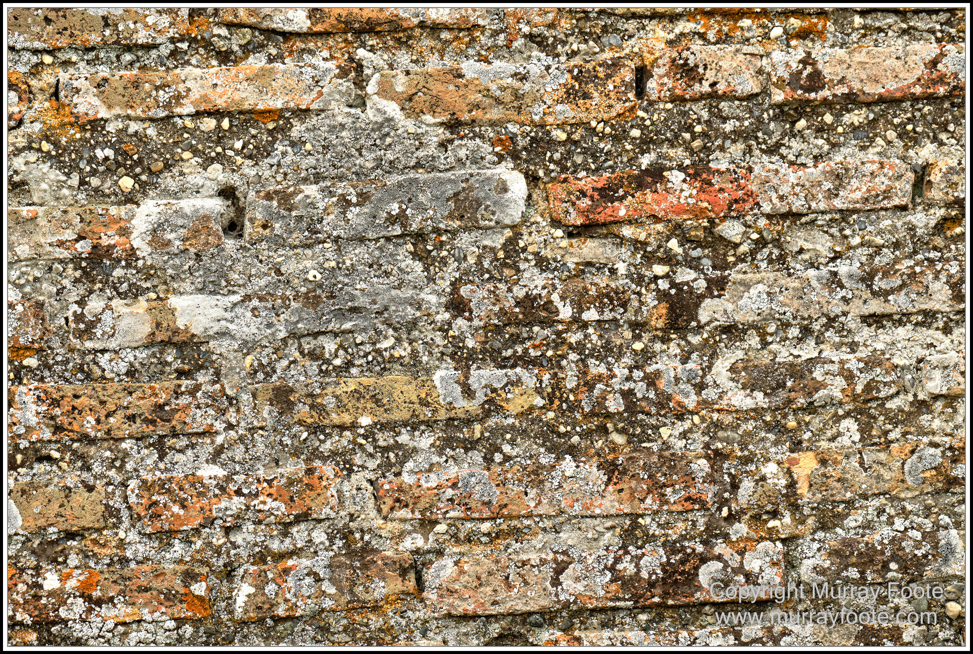 Lichen on some of the walls produces an almost abstract effect.